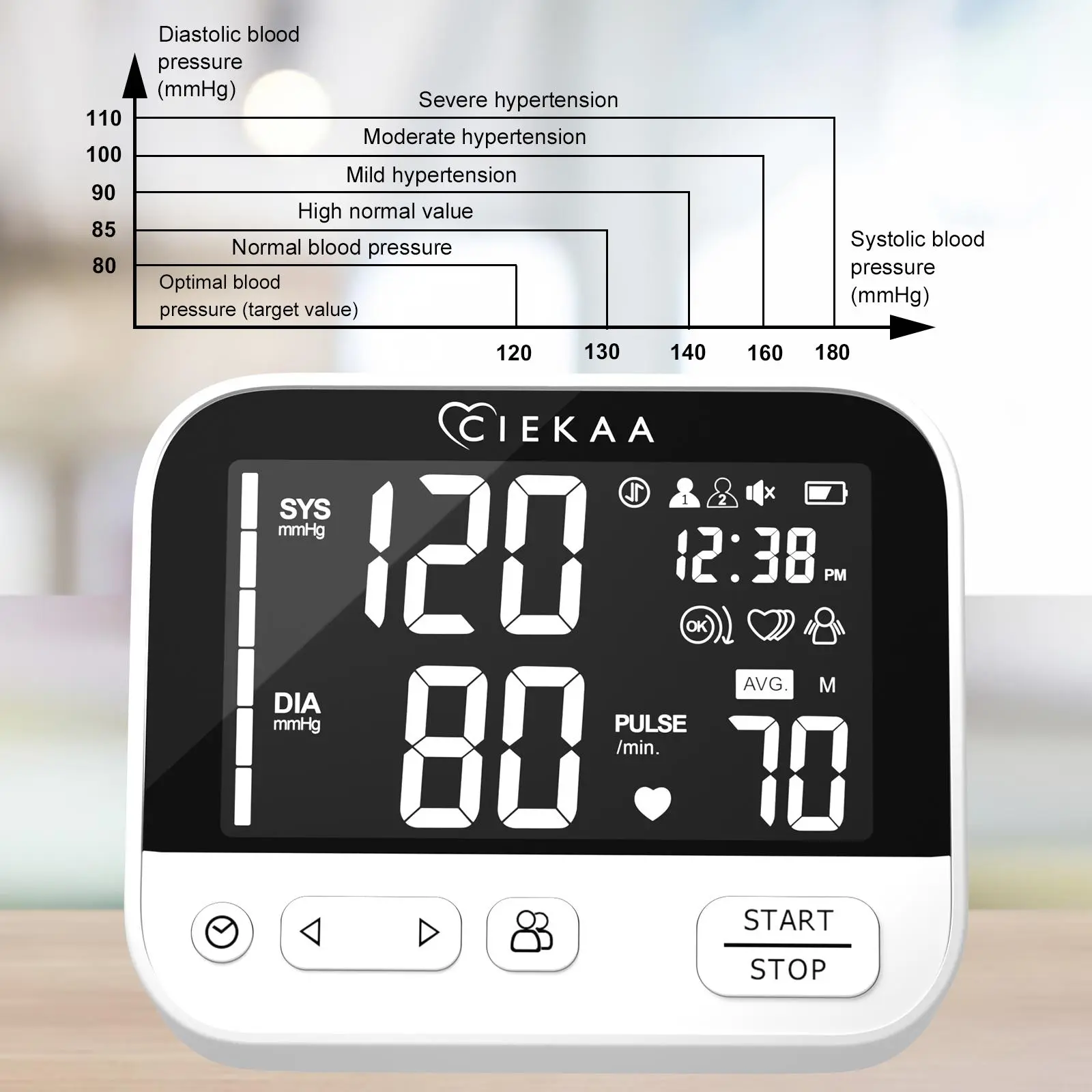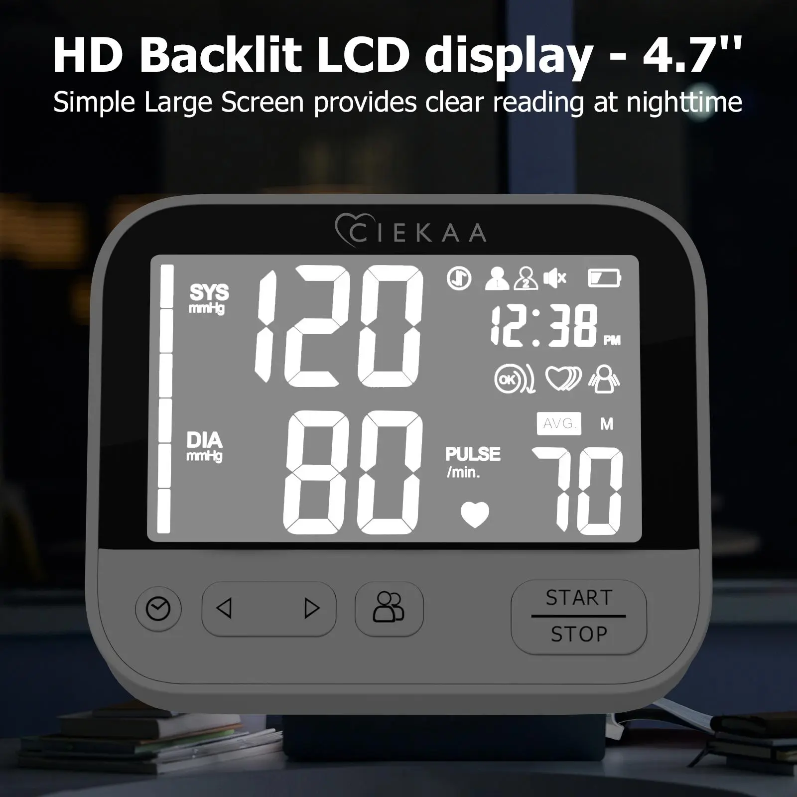 Multiple button design makes operation simple and intuitive. The large display with big digits ensures easy readability. The clear backlit display provides clear readings in the darkness. The monitor includes a Date&Time Stamp and a low battery indicator. It automatically powers off for convenience.
