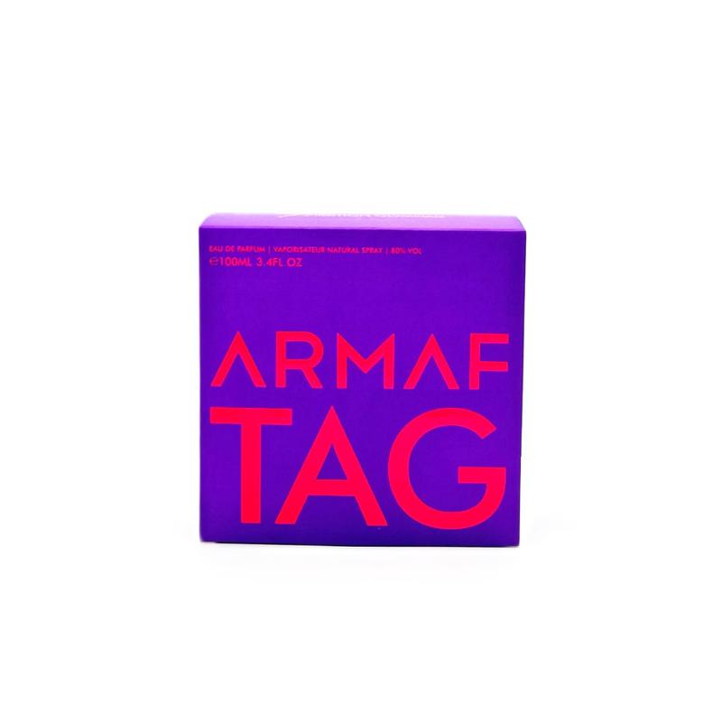 Indulge in the luxurious and captivating fragrance of ARMAF TAG DONNA COLARATA EAU DE PARFUM SPRAY 3.4FL.OZ, a unisex perfume that exudes a blend of citrus, wood, fruity notes enhanced with lavender and vanilla essences.