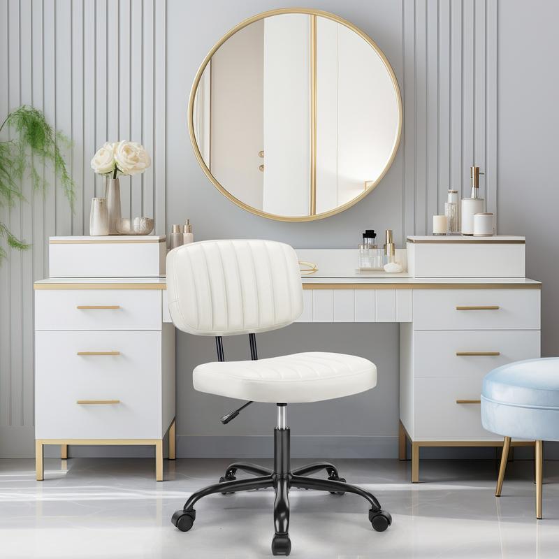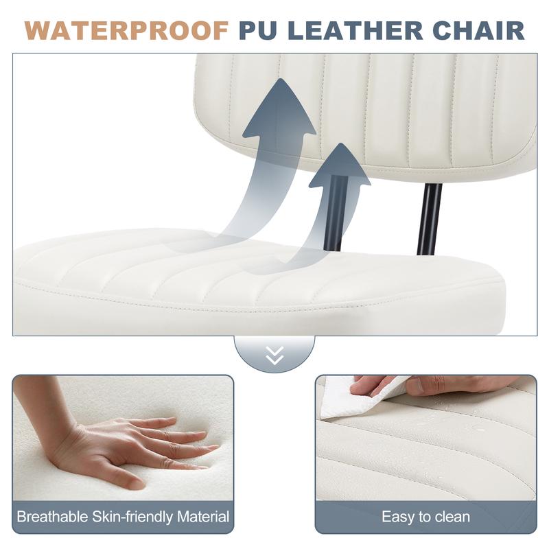 ·【STURDY AND DURABLE OFFICE CHAIR】 This PU leather armless desk chair is made up of high-quality padded foam cushion, U-shaped lumbar support, sturdy base (maximum load capacity 250lbs) , and upgraded cylinders are certified by SGS, This office chair is BIFMA certified, and factory tested over 10,000 times to ensure your safety while sitting on our desk chair!