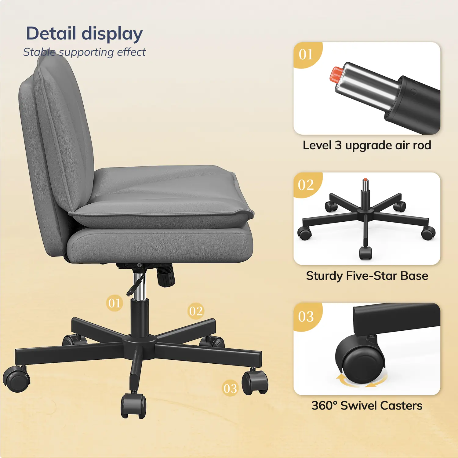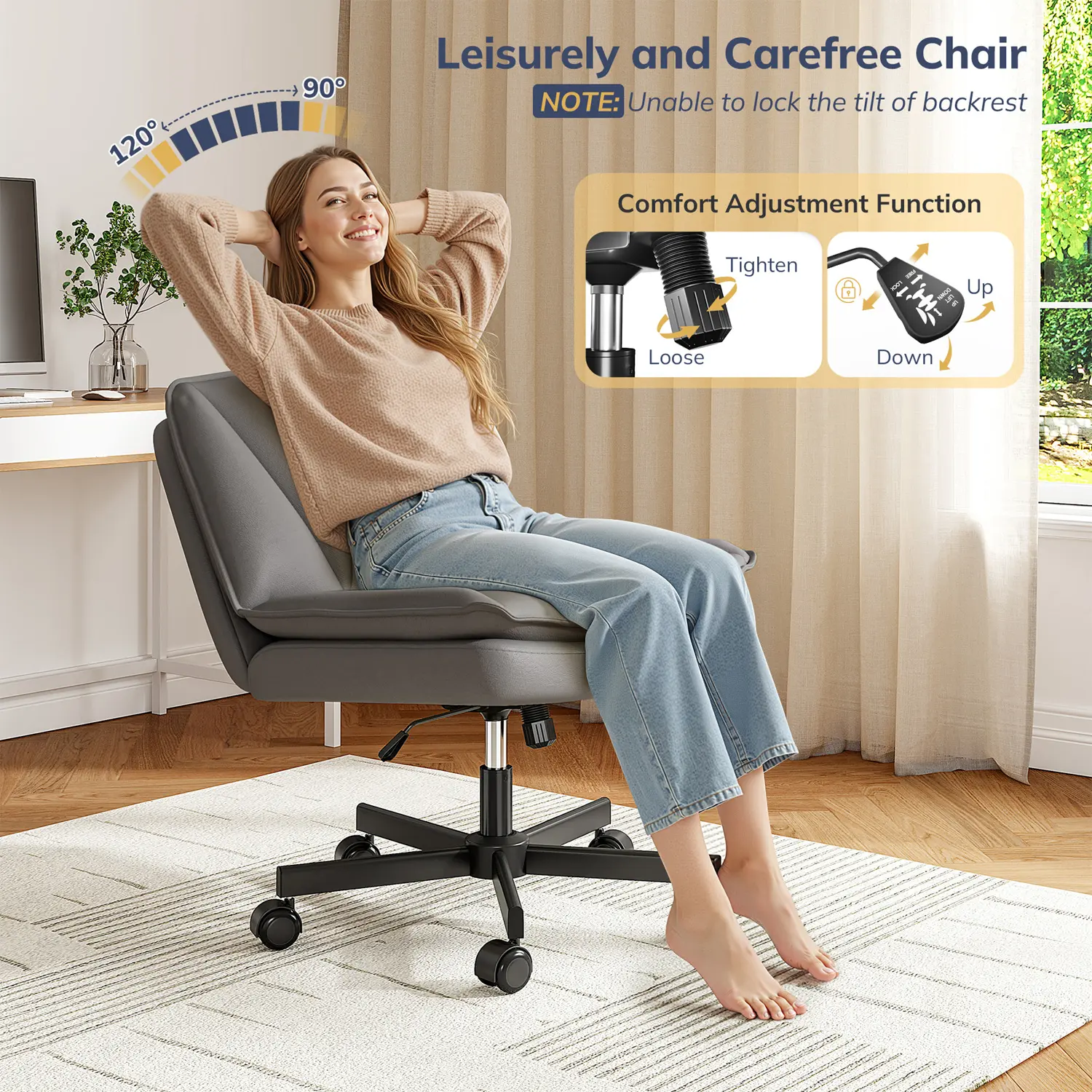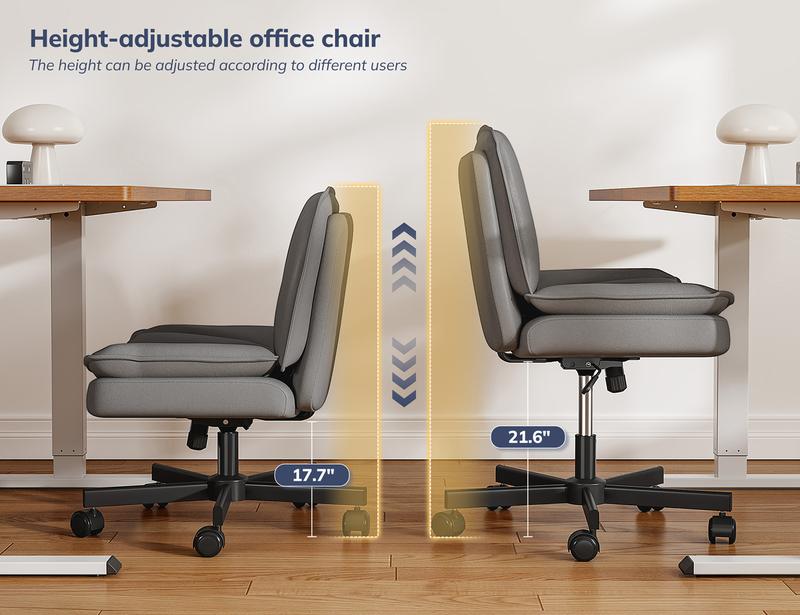 ·Height Adjustable & Swivel & Locking-Raybee office chair with 5'' adjustable height, 360 degree swivel angle and 105°-120° tilt angle, easily adjust the seat height between 31-35 inches with this minimalist desk chair’s one-touch height adjustment lever, to adapt to various people with different heights. This chair provides you an optimized position whether working or relaxing, you can adjust the tilt tension with the black round knob under the seat.So it can also serve as a makeup chairvanity chair.