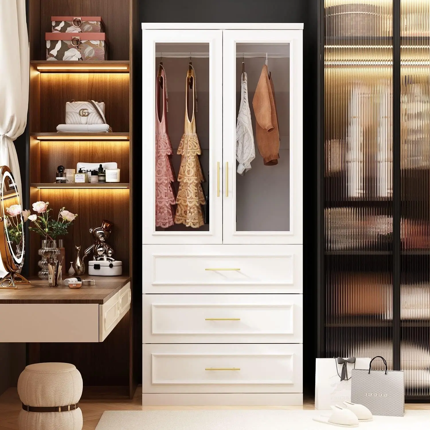 ·Armoire Closet Collections - The 3 wardrobes can be combined together to become storage organization for your bedroom, helping maintain cleanliness. You can try arranging them according to your preferences and needs to make the most of the space and achieve effective storage.