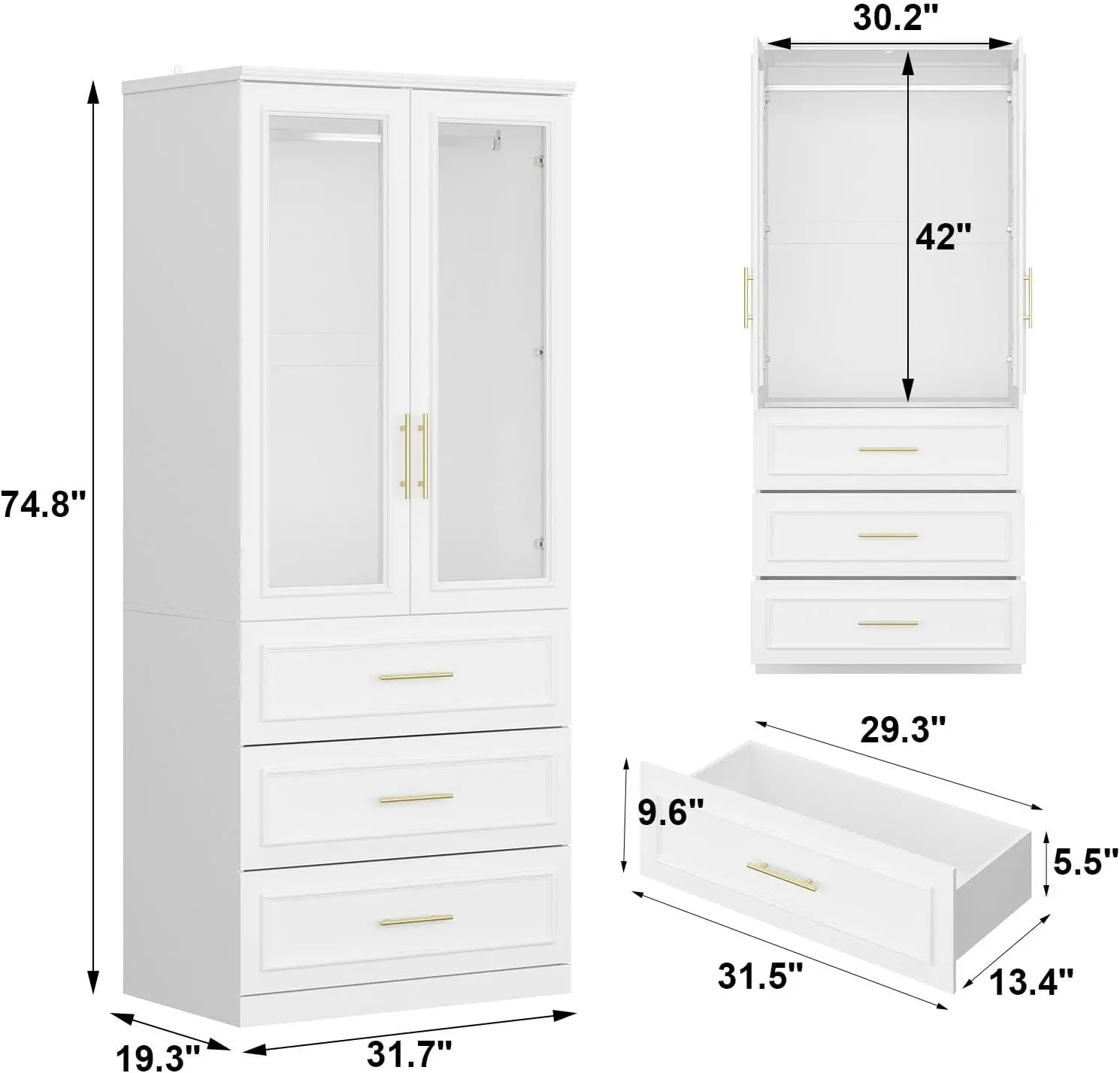 ·2-Person Assembly - To make sure the stability, this item is divided into a large number of pieces. Please follow the instructions step by step with all your caution. Every piece is labeled and all hardwares are included with instructions. Overall Dimension: 31.7”(W) x 19.3”(D) x 74.9”(H). Please check the size image from the description if you’d like to know the size of inner space.