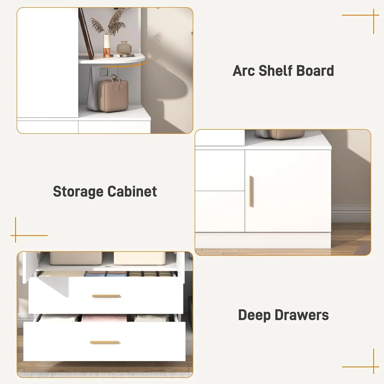 Upgraded Storage Space: Equipped with aluminum alloy hanging rods to hang your suits, shirts and skirts. There are also storage cabinets and 2 large drawers at the bottom to store other clothes. The open storage on the right is easy to take