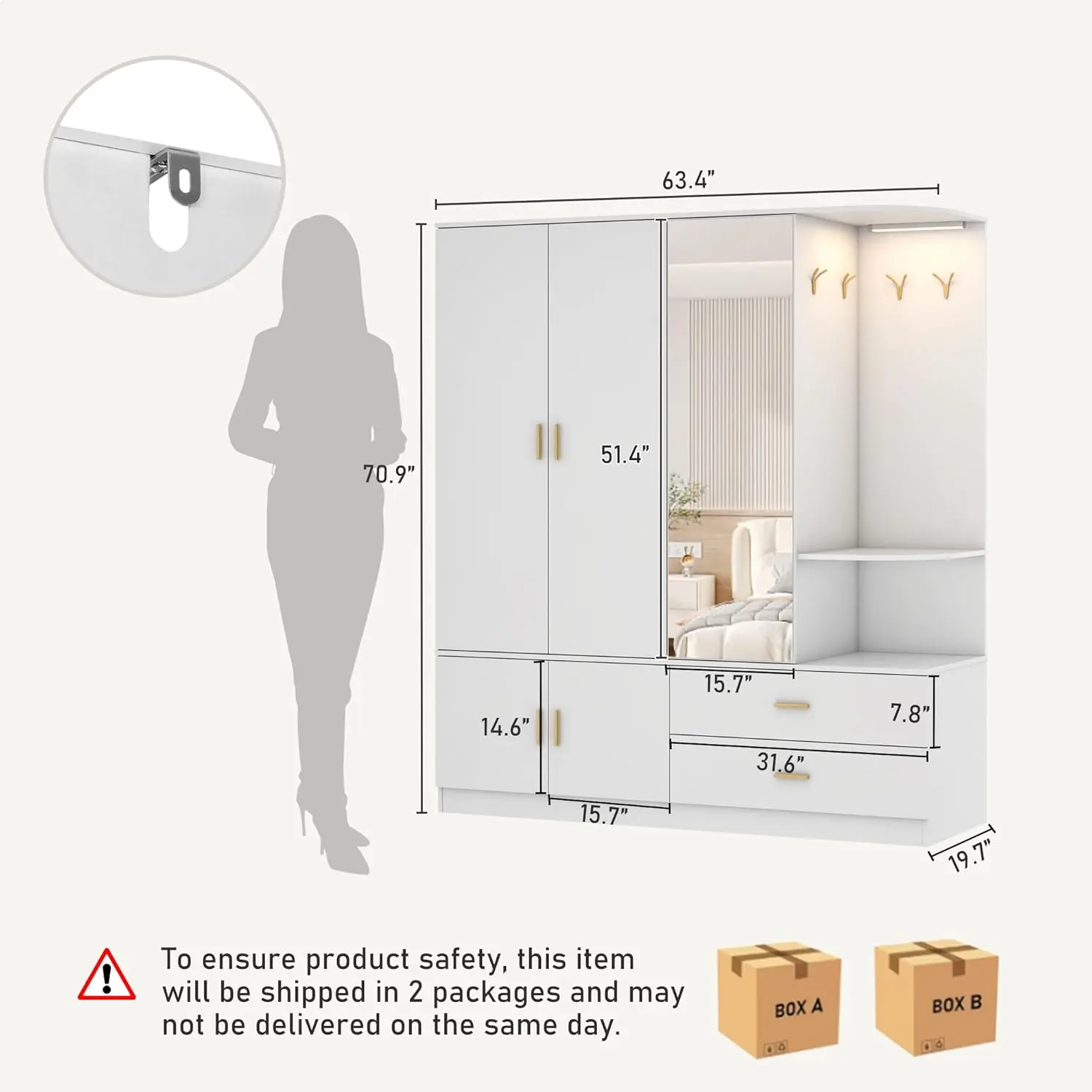 Buy with Confidence: We ship in 2 packages, which may not arrive at the same time. Our wardrobe storage cabinet include instruction and installation video.