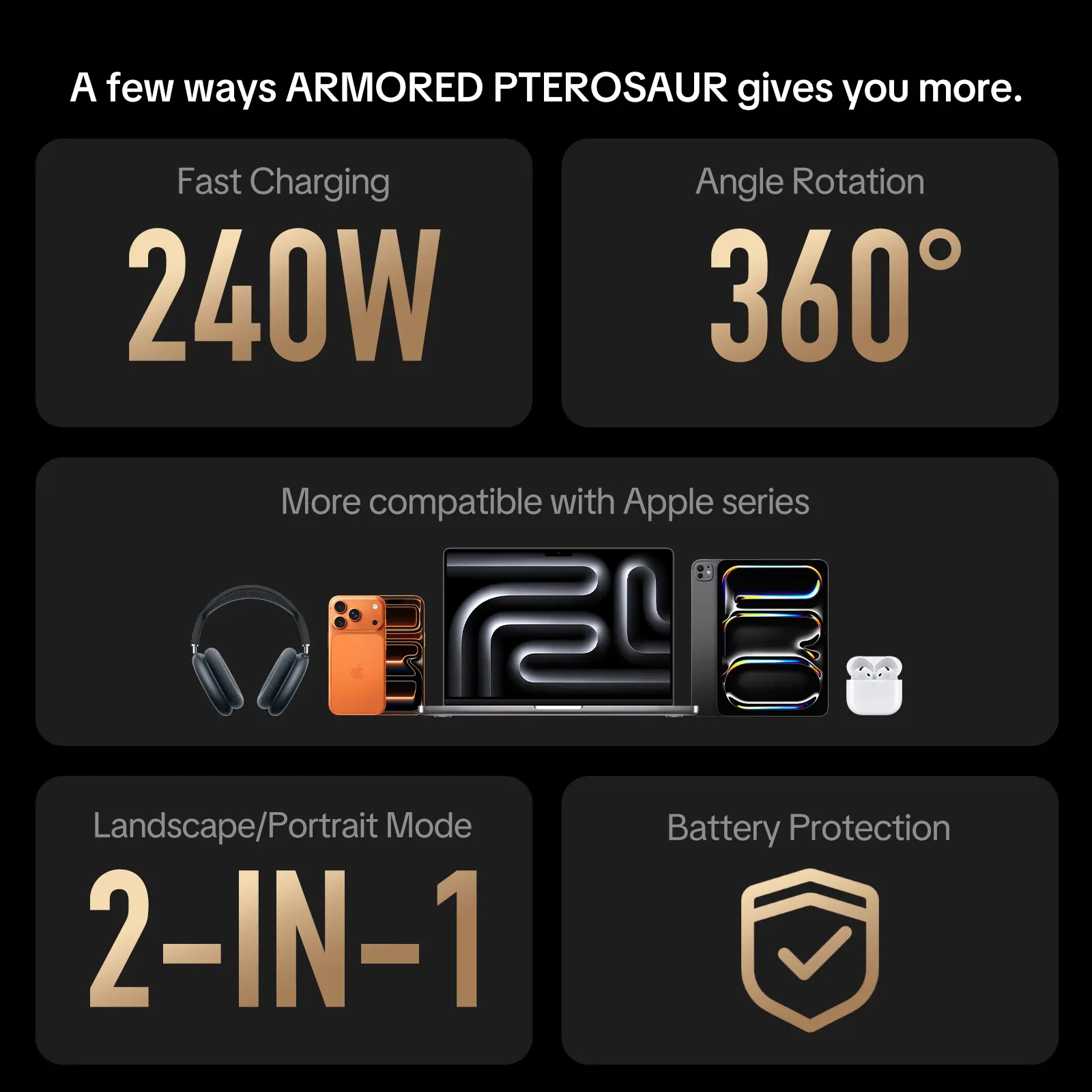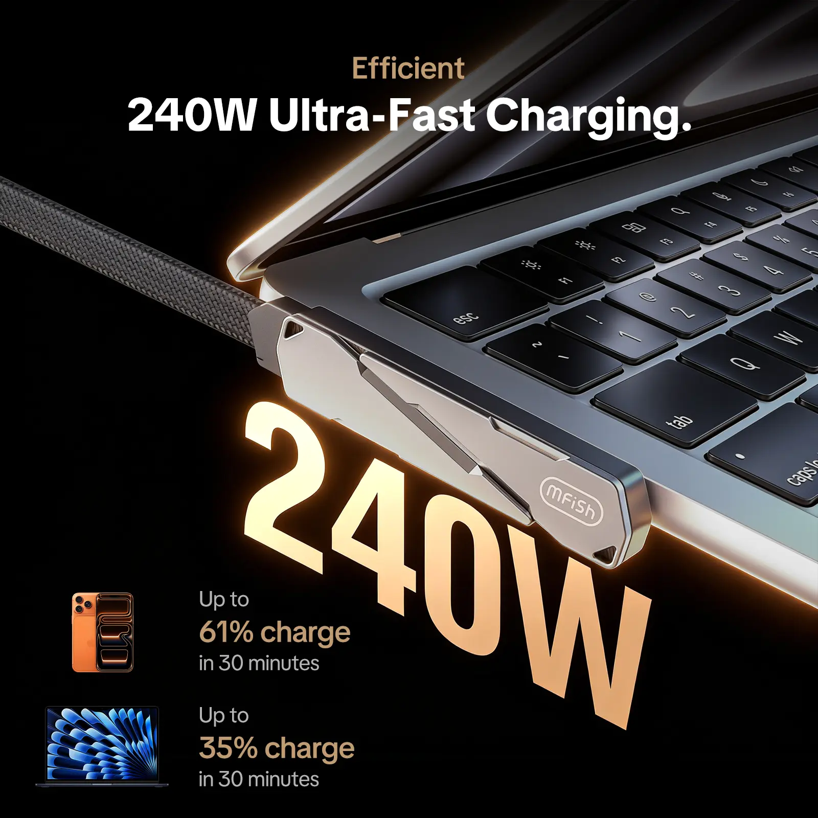 ·240W Ultra-Fast Charging & 480 Mbps Data Transfer: Slashes charging time for all USB-C devices while enabling quick file syncing—ideal for smartphones, laptops, and tablets