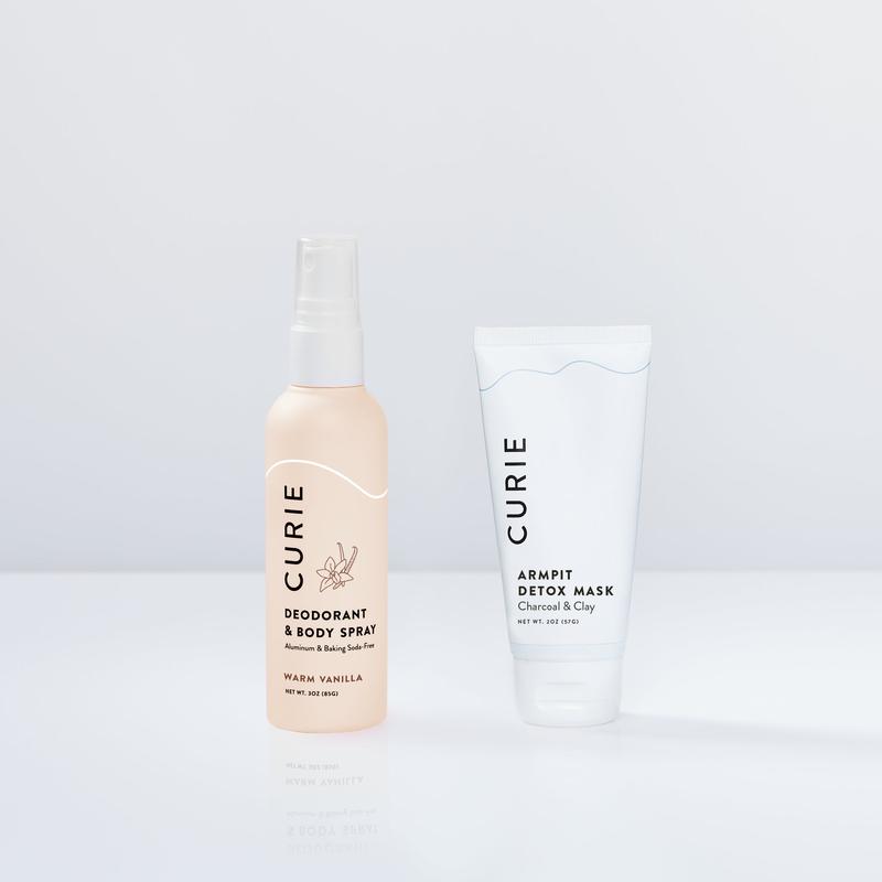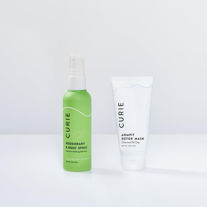 Switching to aluminum-free deodorant just got easier with Curie’s Armpit Detox Duo, featuring our best-selling Armpit Detox Mask and Clean Deodorant & Body Spray. This powerful combo helps detoxify your pits to help keep you smelling (and feeling) fresh from head to toe!