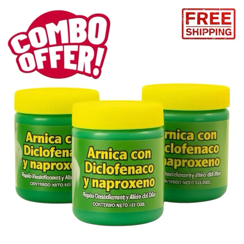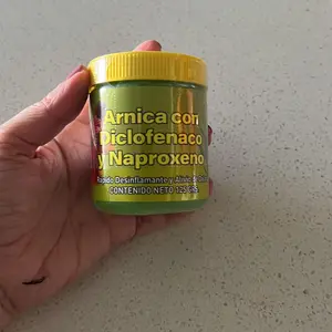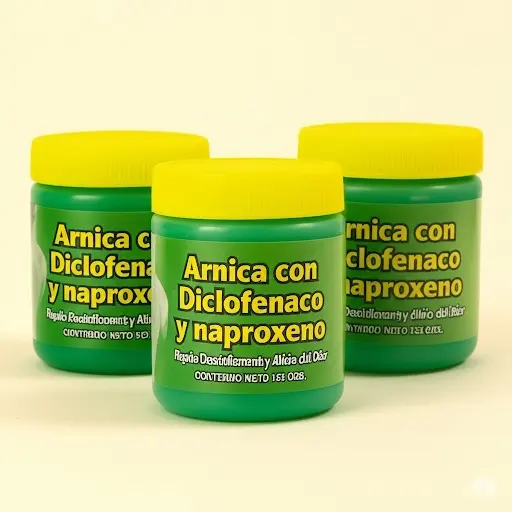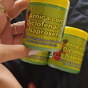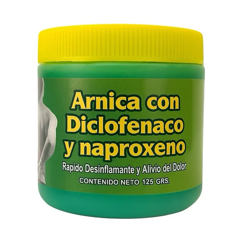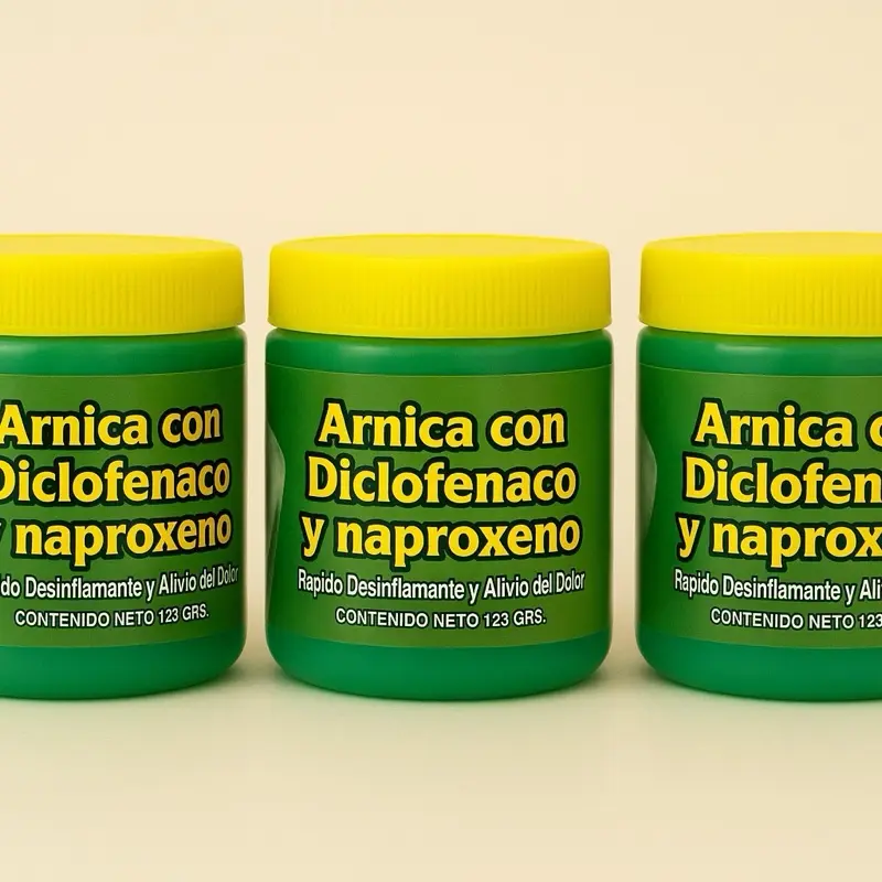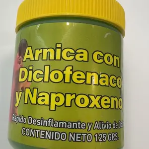 Este medicamento contiene árnica con diclofenaco y naprosxeno alibia todo tipo de dolor si tienes dolor de servicial es el mejor dolor donde quiera te lo puedes echar no te bas a quejar