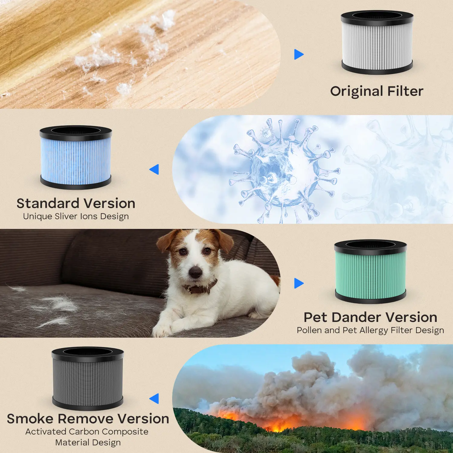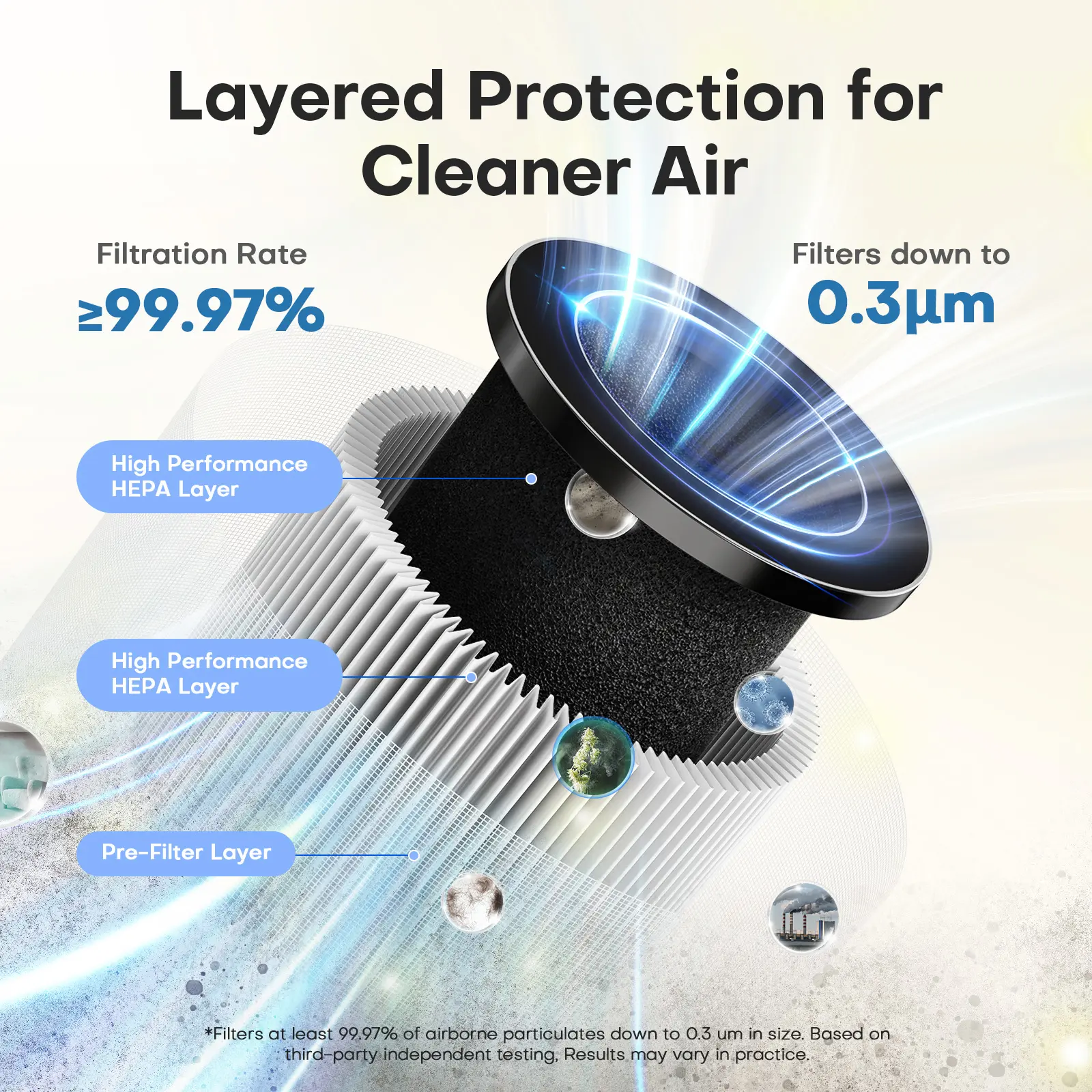 ·Impressive Filtration: Effectively filters smoke, pollen, dander, and hair for improved air quality and health.