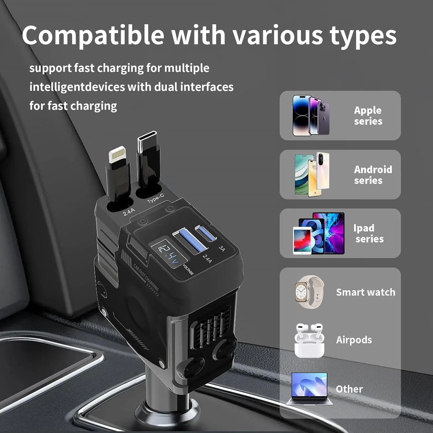 ·Retractable Design: The retractable charging cable is easy to store and carry, keeping your car tidy and organized.