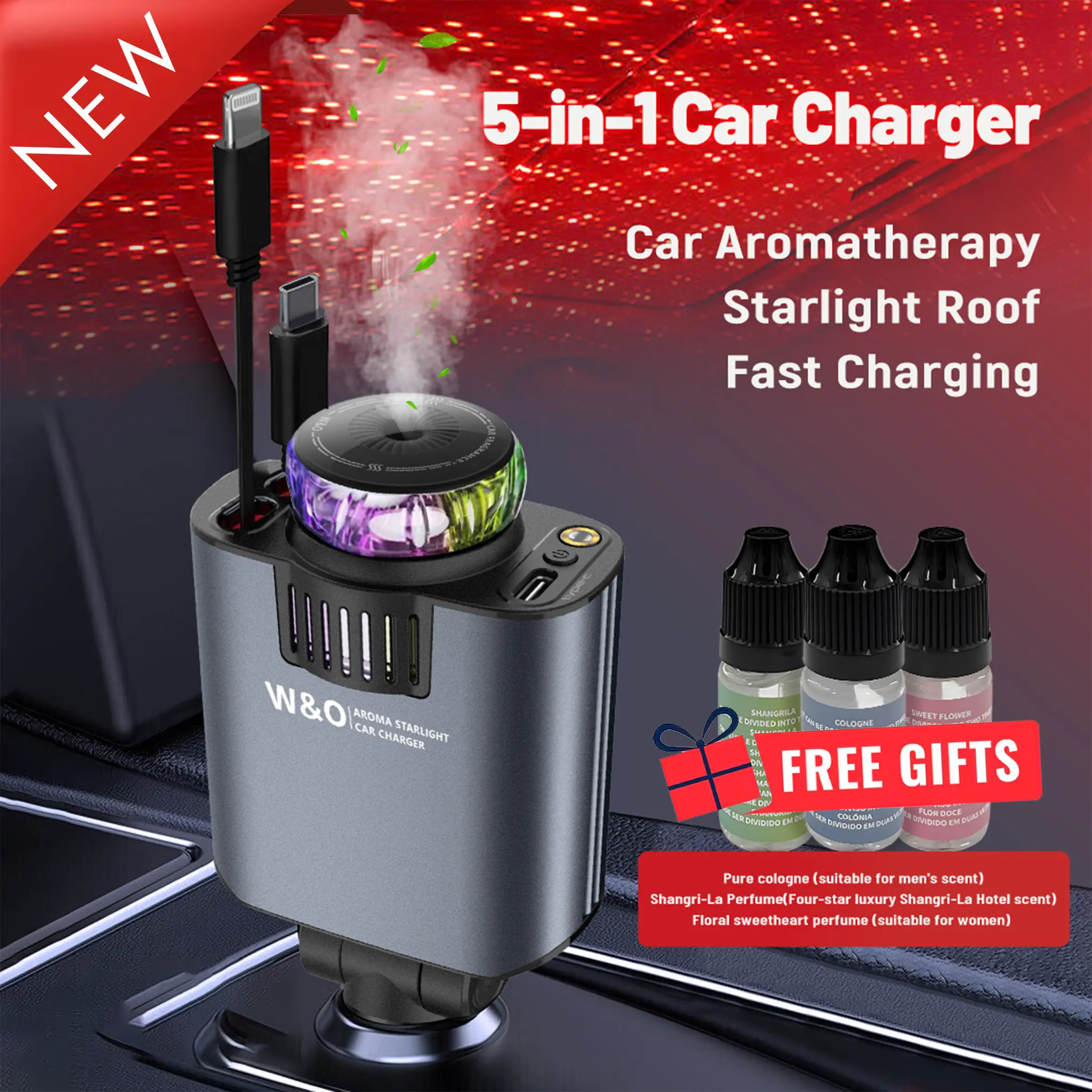 No.1-------New 5-in-1 Aromatherapy Car Charger with Star Light