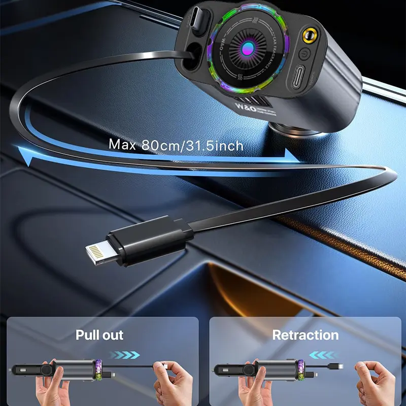 ·Retractable Design: The retractable charging cable is easy to store and carry, keeping your car tidy and organized.