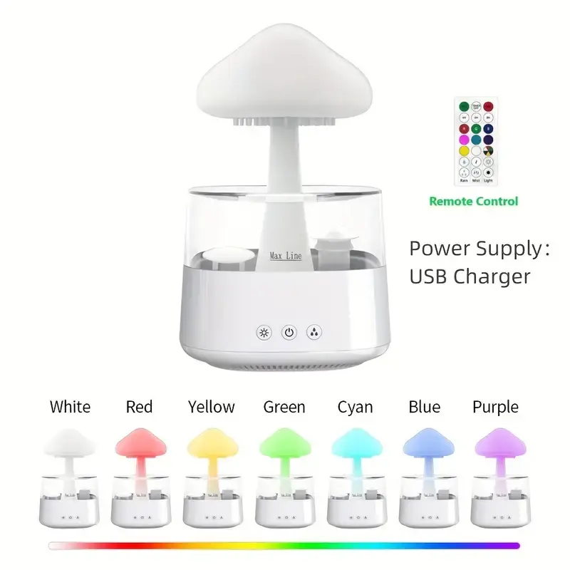 Raining Cloud Aromatherapy Diffuser – A Calming White Noise Humidifier with Micro Rainfall Effect and Multi-Color LED Clouds. Ideal for Deep Sleep, and Mood Enhancement. Features an Adjustable Timer, Essential Oil Compatibility, perfect Christmas Gift.