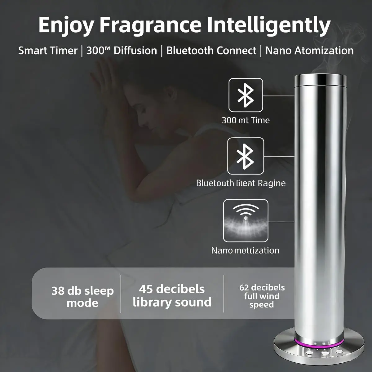 ·Intelligent, convenient control combined with a durable, high-end structure. Easily adjust the ambiance with the included remote control or dedicated smartphone app, making changes anytime, anywhere. This sturdy oil diffuser is housed in a streamlined column made of robust PP and aluminum alloy, built to last for continuous commercial use while complementing sophisticated home settings.
