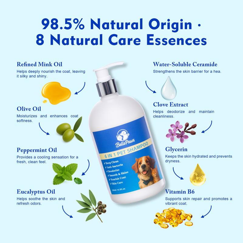 This shampoo is a 6-in-1 formula, it’s very convenient to use. One bottle handles cleansing, conditioning, deodorizing, and more, which makes bath time quicker and easier. It‘s a gentle, effective daily-use shampoo with great value for the price. My dog has used it multiple times now, and the results have been consistently good. I would definitely buy again.