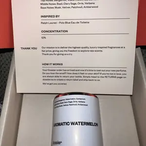 Aromatic Watermelon opens with a refreshing top of water fruits, basil, and verbena. This cooling effect lasts throughout, sustained by a subtle and sophisticated aromatic, woody, orris base.