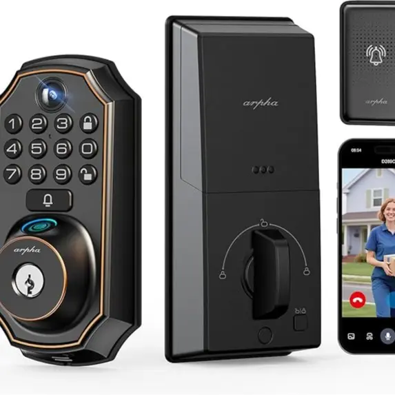 Arpha D289H video smart lock: WiFi Connected fingerprint smart door lock+ security camera+doorbell. Keyless entry door lock with camera supports 4:3 aspect ratio image.