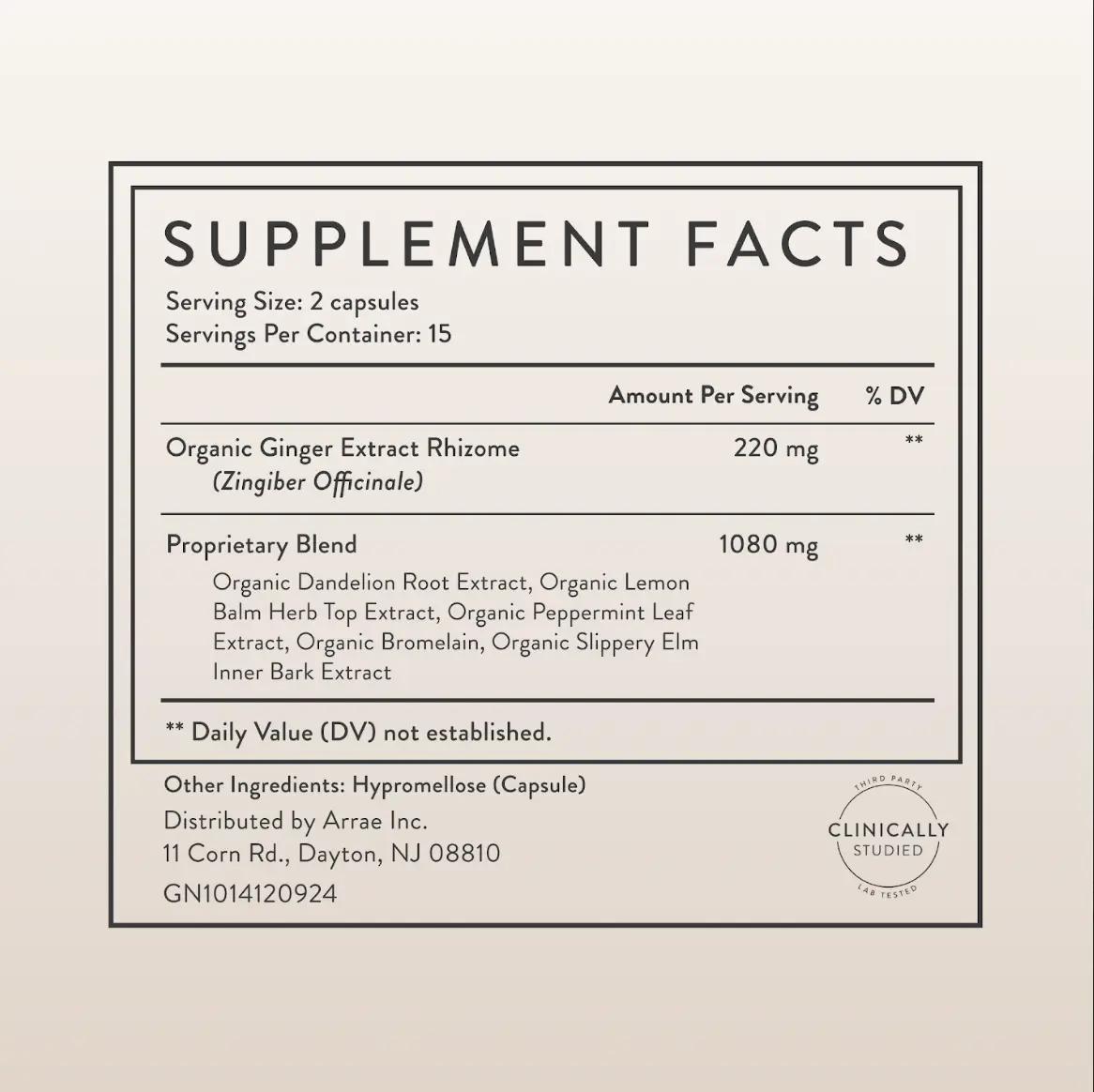 Bloating Relief: Arrae Bloat helps aid common food triggers to support the digestive process. Our organic, vegan, and gut-friendly blend is designed to swiftly reduce gas, bloating, and ease IBS symptoms. Arrae Bloat contains 5 natural herbs and a pineapple-derived digestive enzyme: bromelain, ginger root, dandelion root, lemon balm, peppermint, and slippery elm. This clean, no-filler formula is for men and women looking to optimize their gut health.