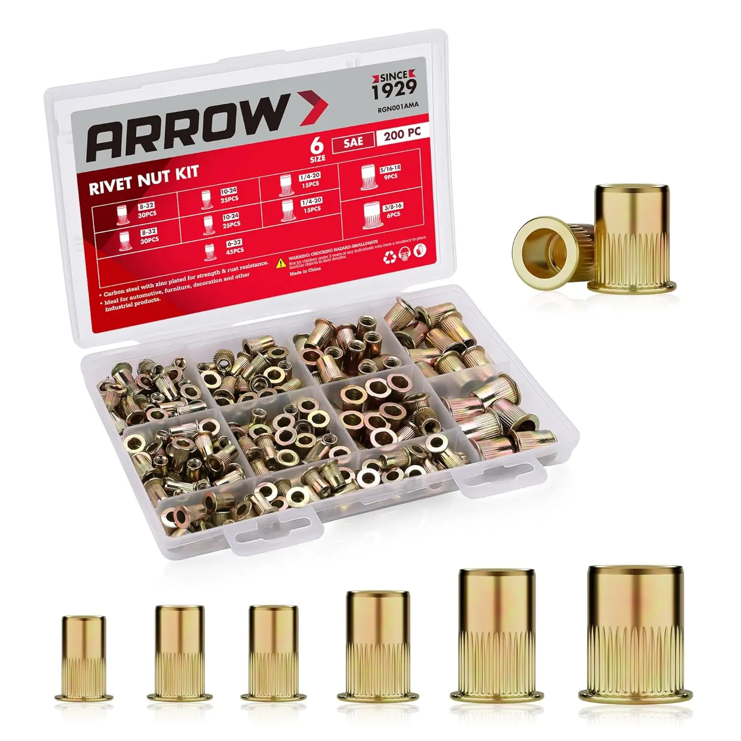 ·Package Included: This rivet nut kit includes 45 pieces of #6-32, 60 pieces of #8-32, 50 pieces of #10-24, 30 pieces of 1/4"-20, 9 pieces of 5/16"-18, 6 pieces of 3/8"-16. For convenience, all nuts are neatly organized in a storage case