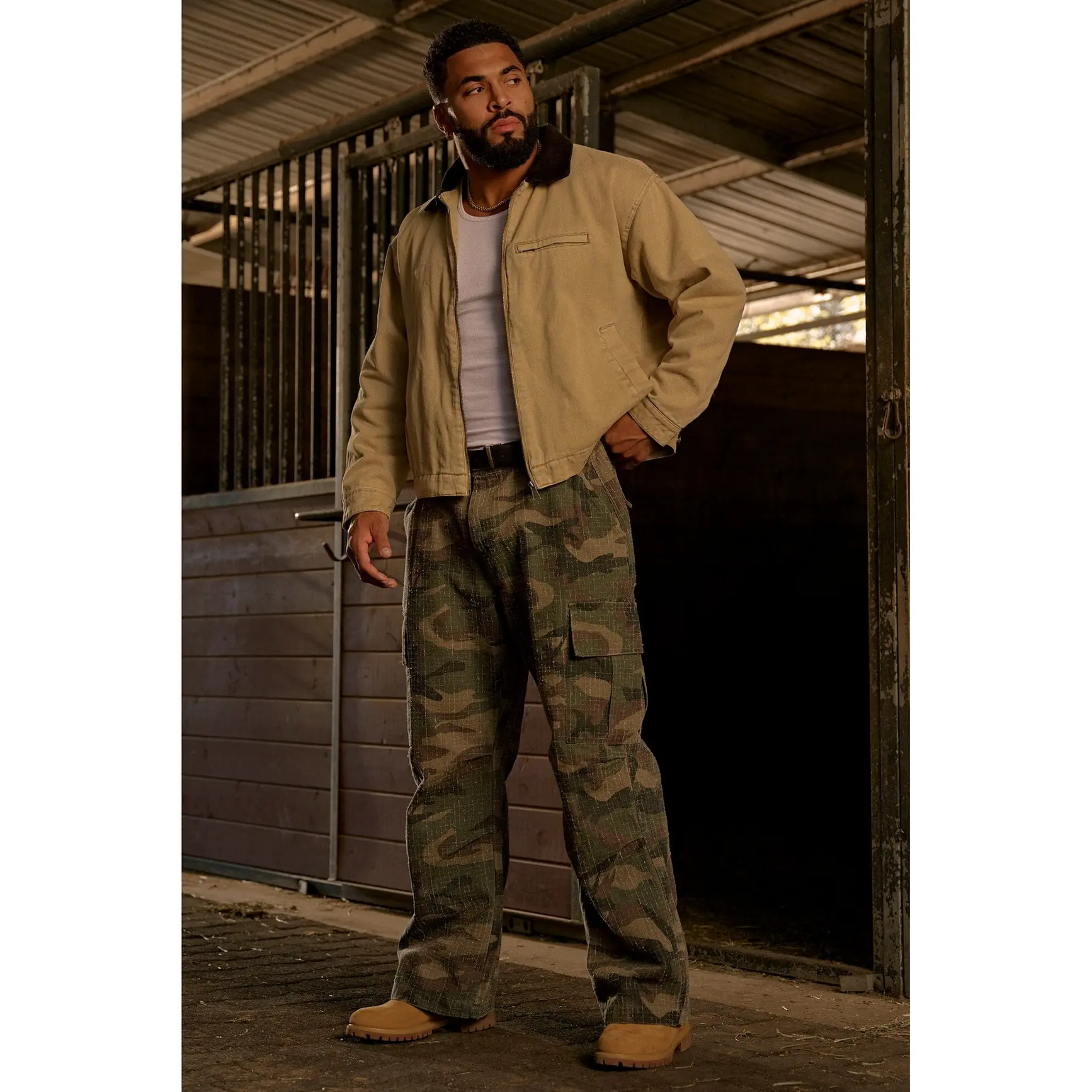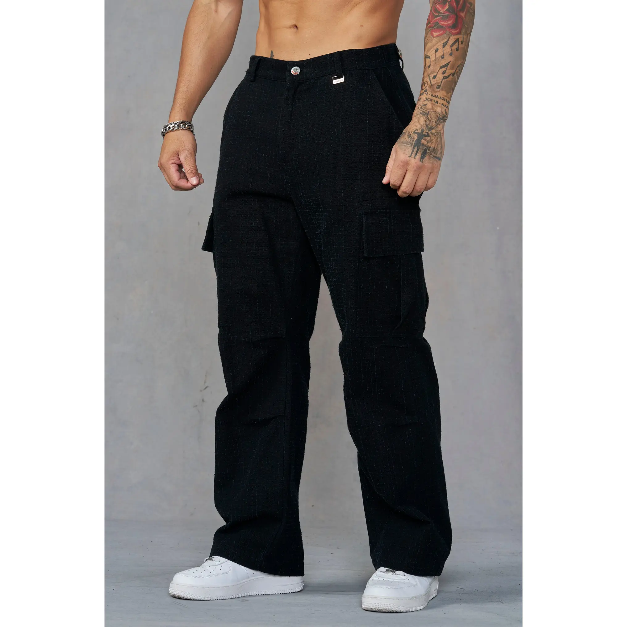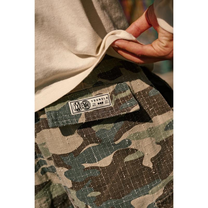 DESIGN: These cargos blend a rugged military look with a clean straight-leg silhouette. The fabric features a subtle grid-stitch texture that adds depth and a worn-in edge, while dual cargo pockets bring utility without bulk. Finished with classic belt loops and a button-zip waist for a tough, understated look.