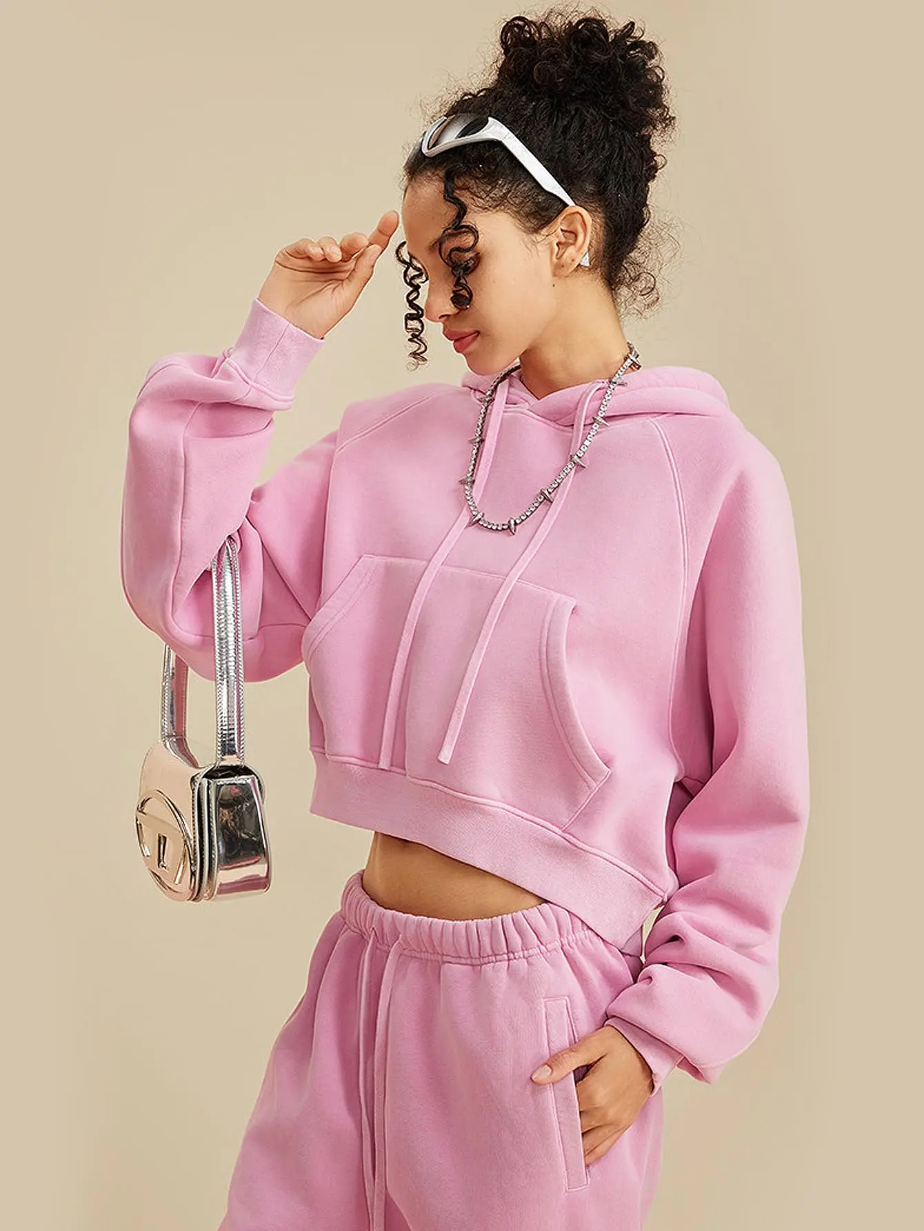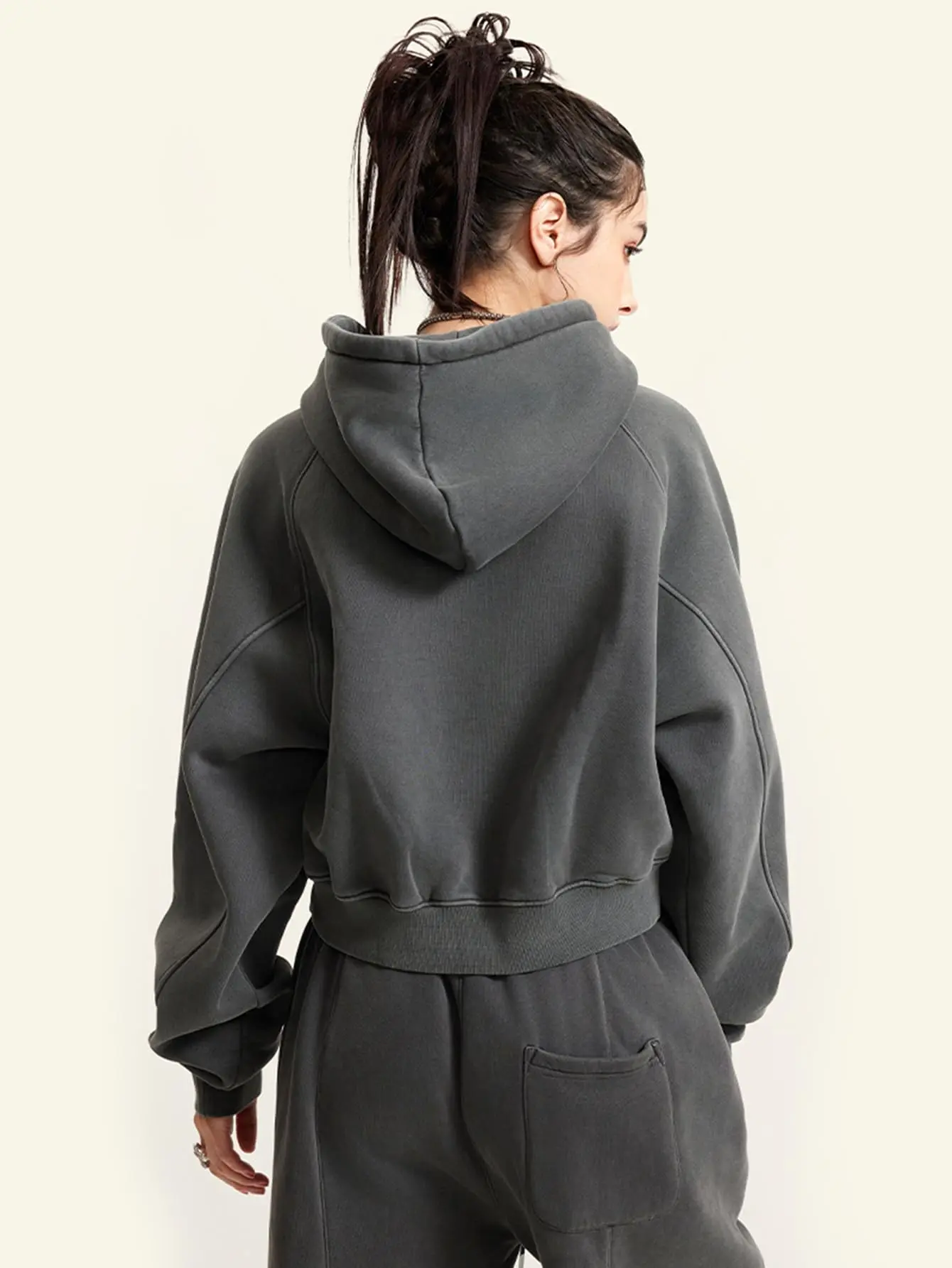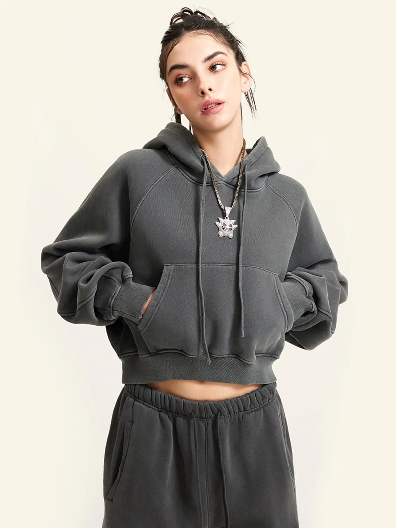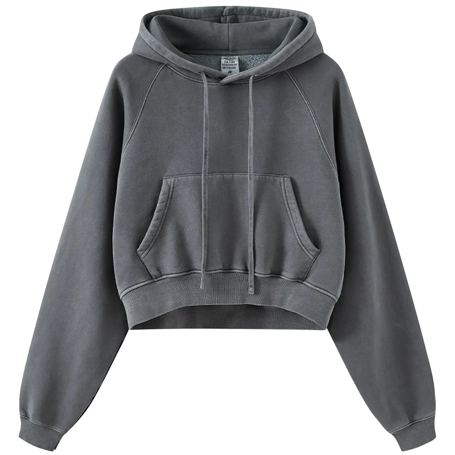 Cute cropped hoodie, love this color goes well with my vans! The quality is great, washes well :) I got a small, has plenty of room and sits where I want it to on my waist (approx 135lbs 5'5) the hood is a little heavy so you do have to adjust sometimes, but that's to be expected with this style:)