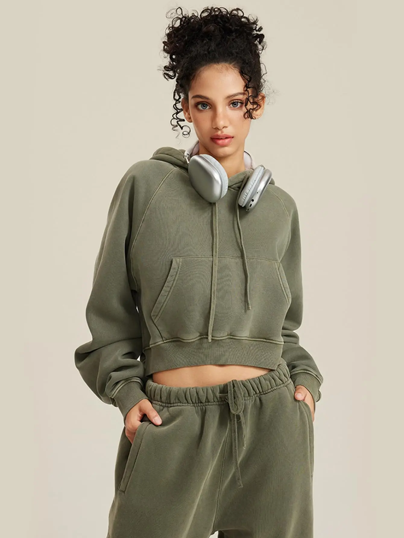 Really nice quality. Thick fabric. Oversized fit. Sleeves are slightly extra long. The color is a washed/distressed army green. Cropped length hits right at my belly button. Love it 😍