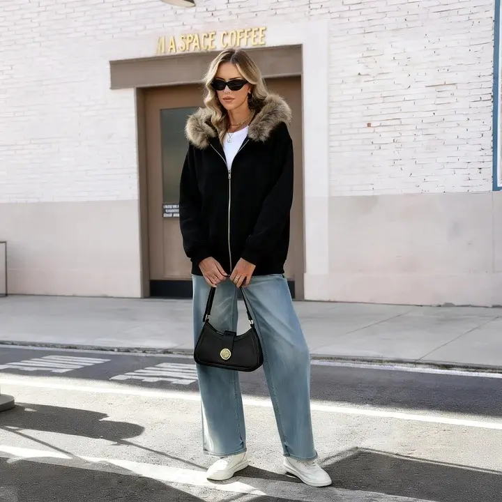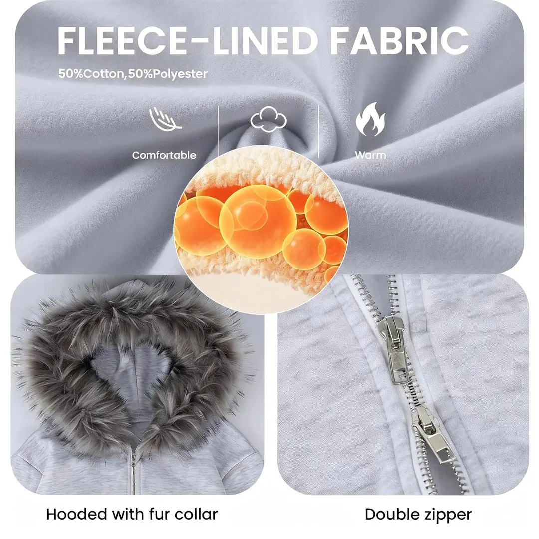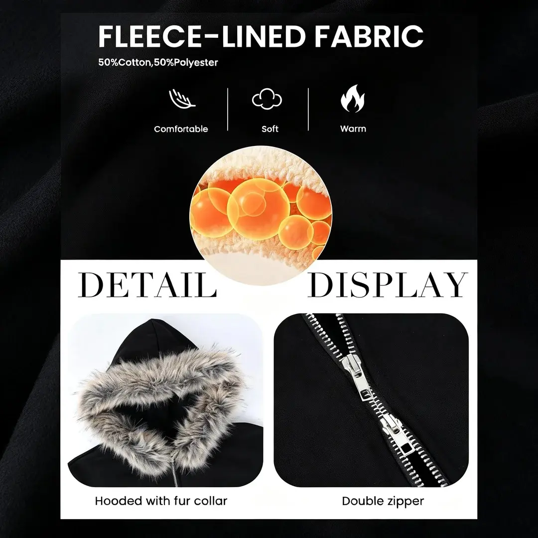 ·Design: Cozy oversized fit with a full front zipper for easy wear. Roomy front pockets keep hands warm and essentials close.