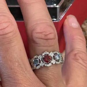 Gorgeous three stone ring! I got champagne, purple and champagne. Love it!