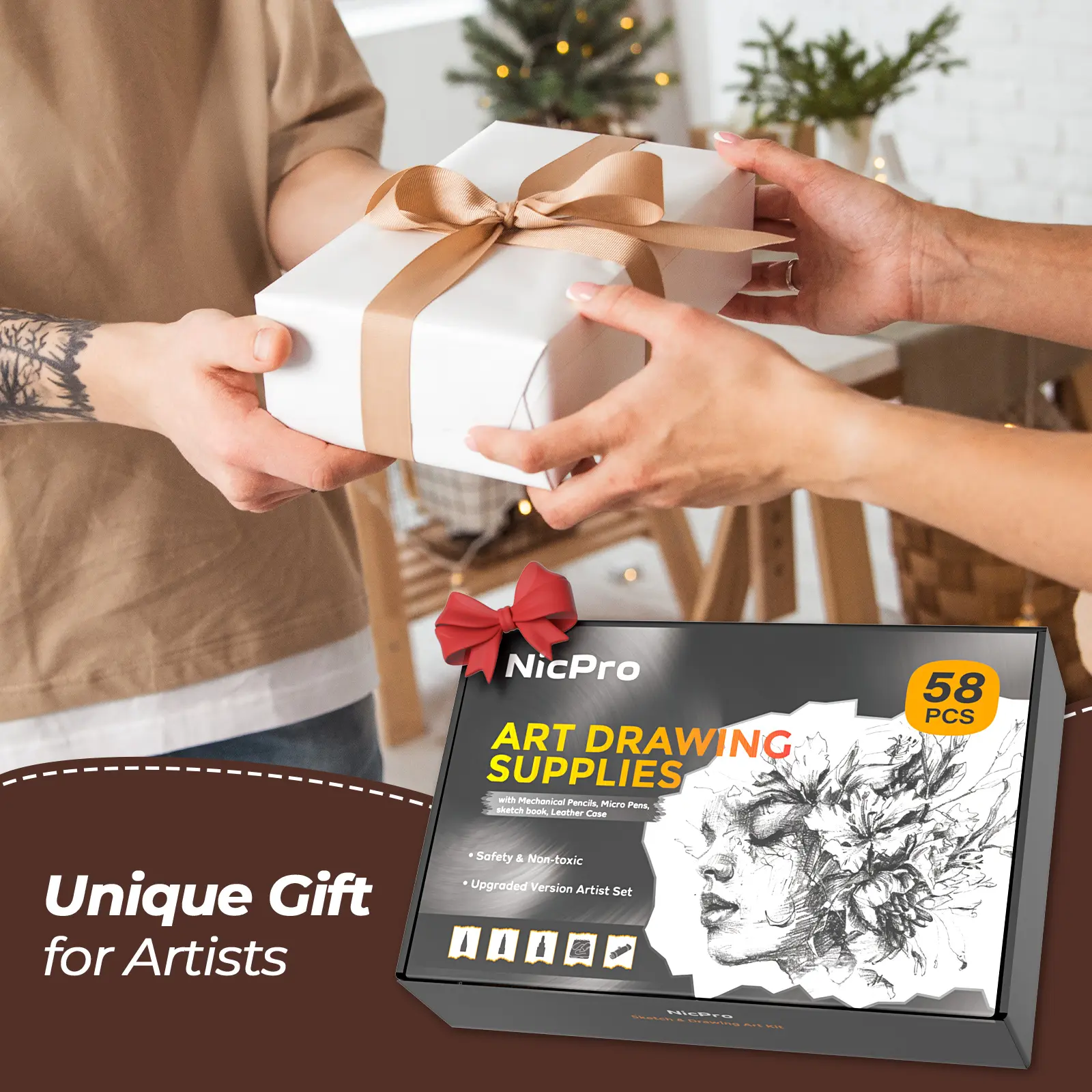Great little mechanical pencil set with A LOT of leads, like and exaggerated amount, I won’t need to get new pencils for a long while, took me a hot minute to figure out there are caps on the erasers, and the colored leads grind away quick but still very good pencil set with nice sketch book