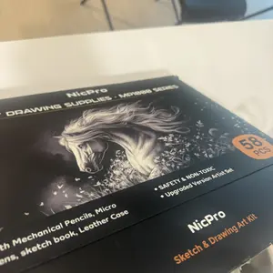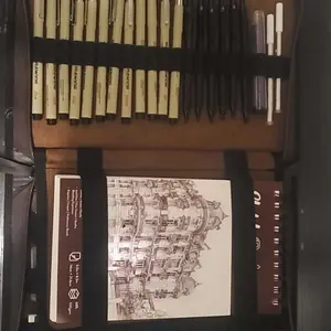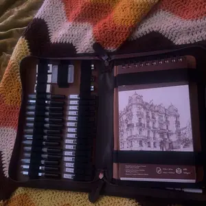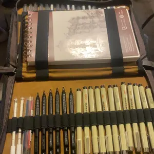 Bought this for my brother since his birthday is coming up. It’s a pretty big case, it comes with everything already organized. The sketchbook is a decent size and it has a lot of pages. I think he’ll like it!