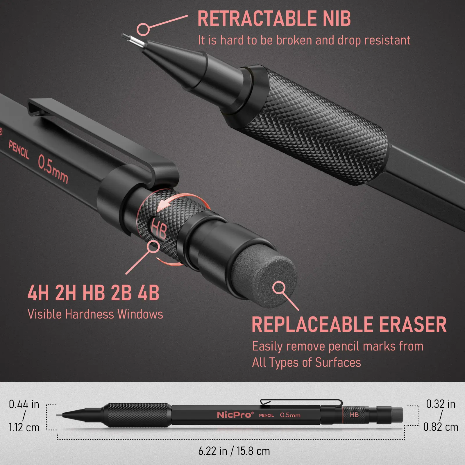 ·Variety of Leads: Choose from 6B, 4B, 2B, HB, 2H, 4H colors.