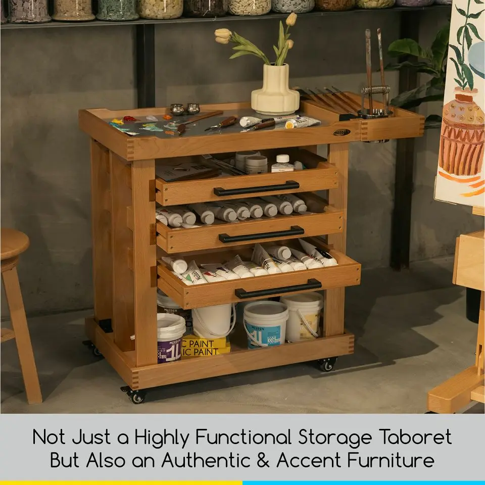 ·BUILT-IN WHEELS: Ergonomic handle design with 4 flexible omnidirectional smooth gliding casters, make the art carts on wheels easy to go from indoor to backyard patio without any wear to carpet and lawn. Just lock the 4 built-in casters when you're ready to draw, they will be secured in place and stay stable.