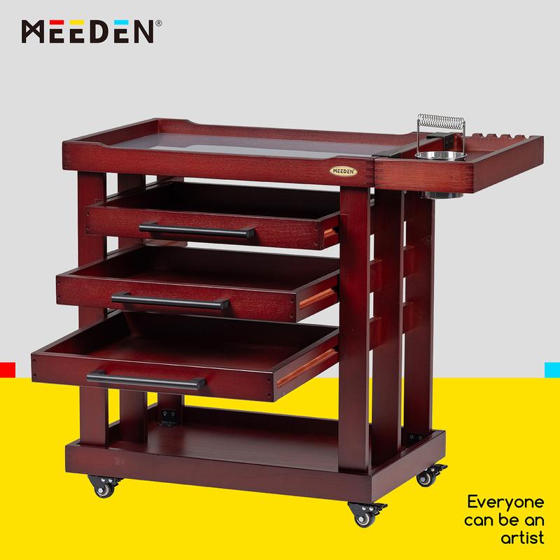 ·MULTIFUNCTIONAL DESIGN: Come with a brush holder, and store different kinds of brushes tidily. Unique round groove for inlaying brush washer, optimizing creation space perfectly. With many functions in one, such a practical and utility cart deserves to have!