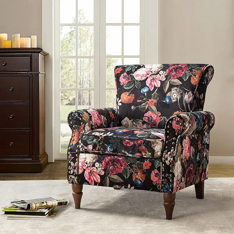 Classic rolled arms and seatback, delicate nailhead trim, as well as various selectable stunning patterns, work together to make this impressive statement. Its beautifully carved solid wood legs support the upper sturdy wooden frame ensuring reliable durability and high quality, plus comfortable foam filling, textured polyester upholstery, and built-in pocket spring to raise the seating amenity.