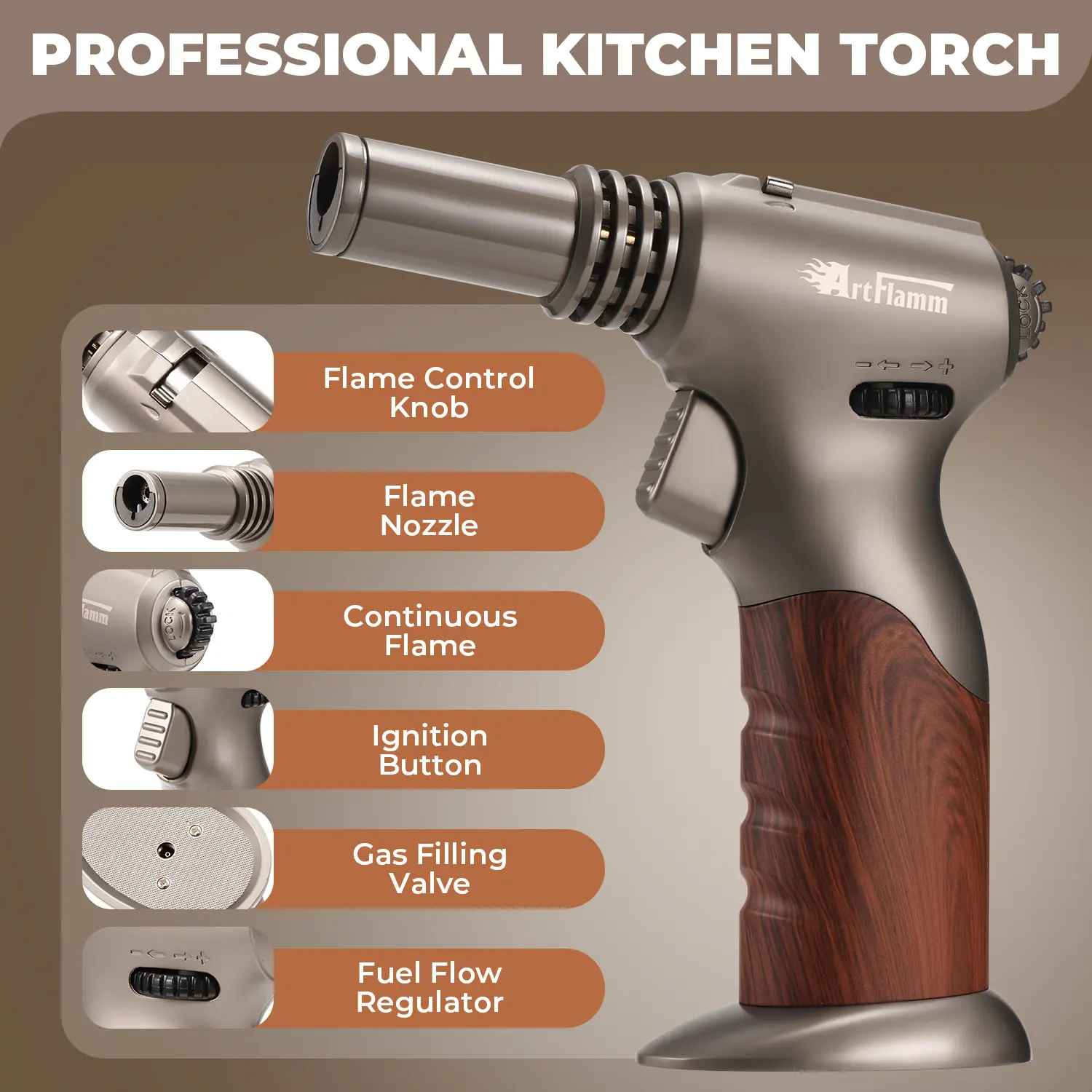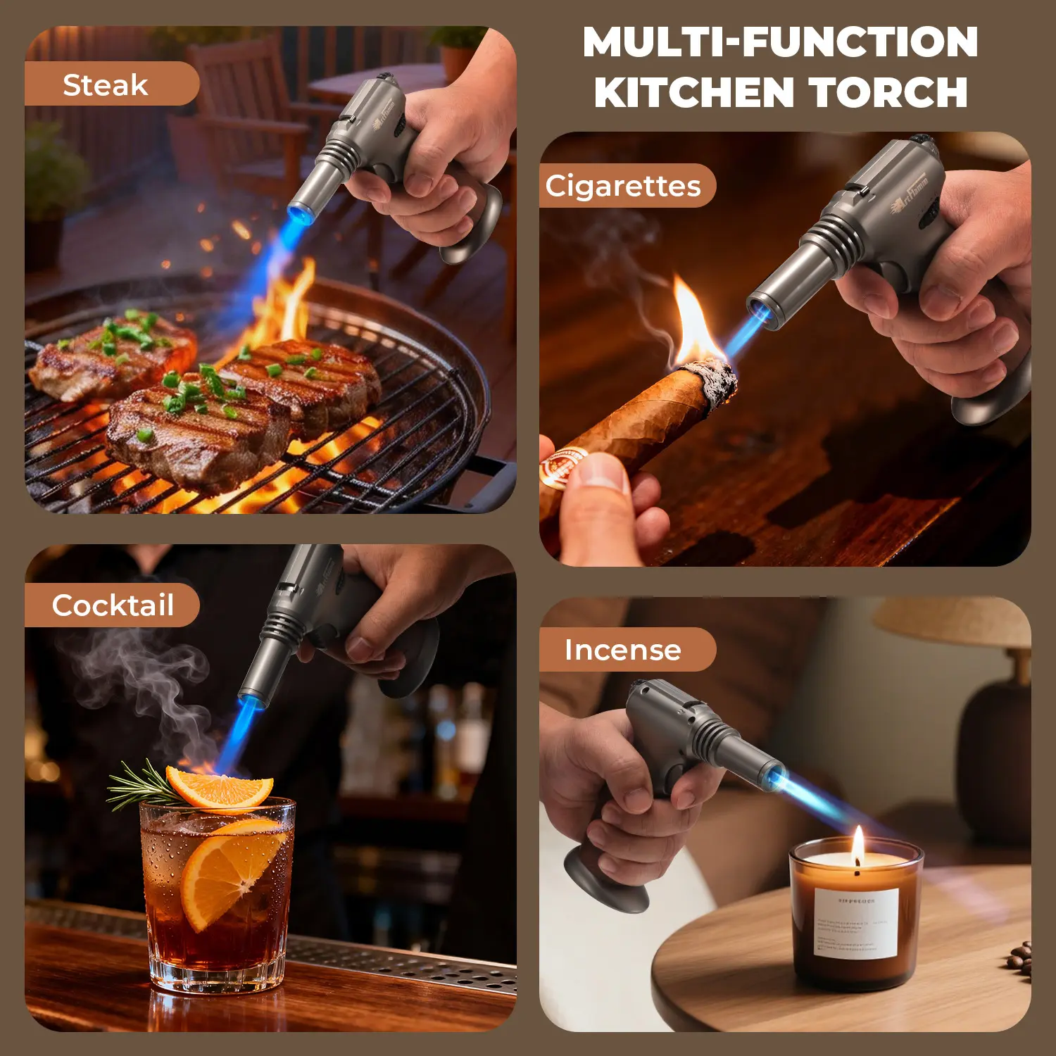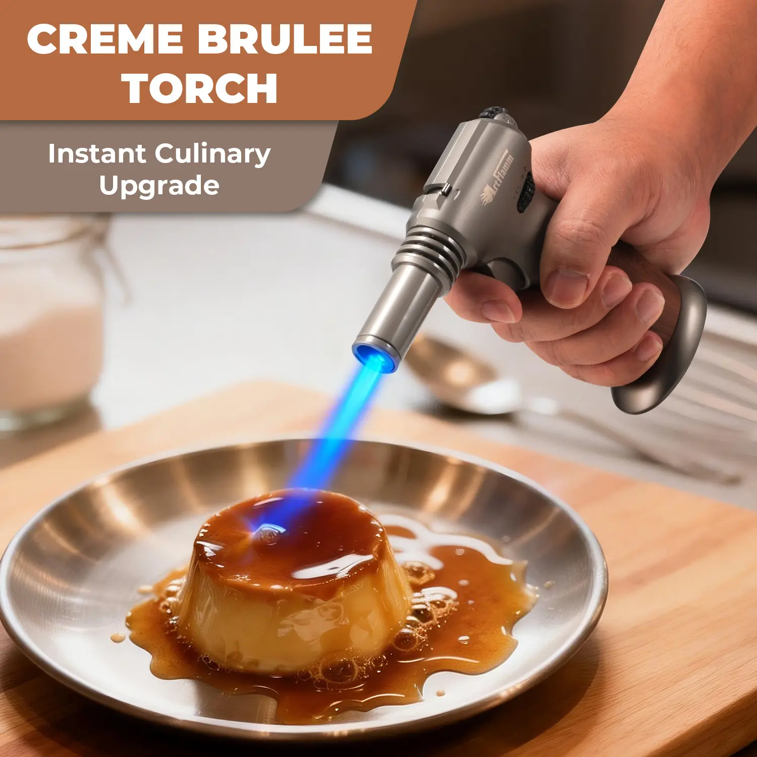 This refillable butane torch features a strong and adjustable flame that provides precise heat control for different tasks. Easily switch from low, gentle flame to high-intensity output for caramelizing sugar, searing food, or handling detailed DIY and light soldering projects.