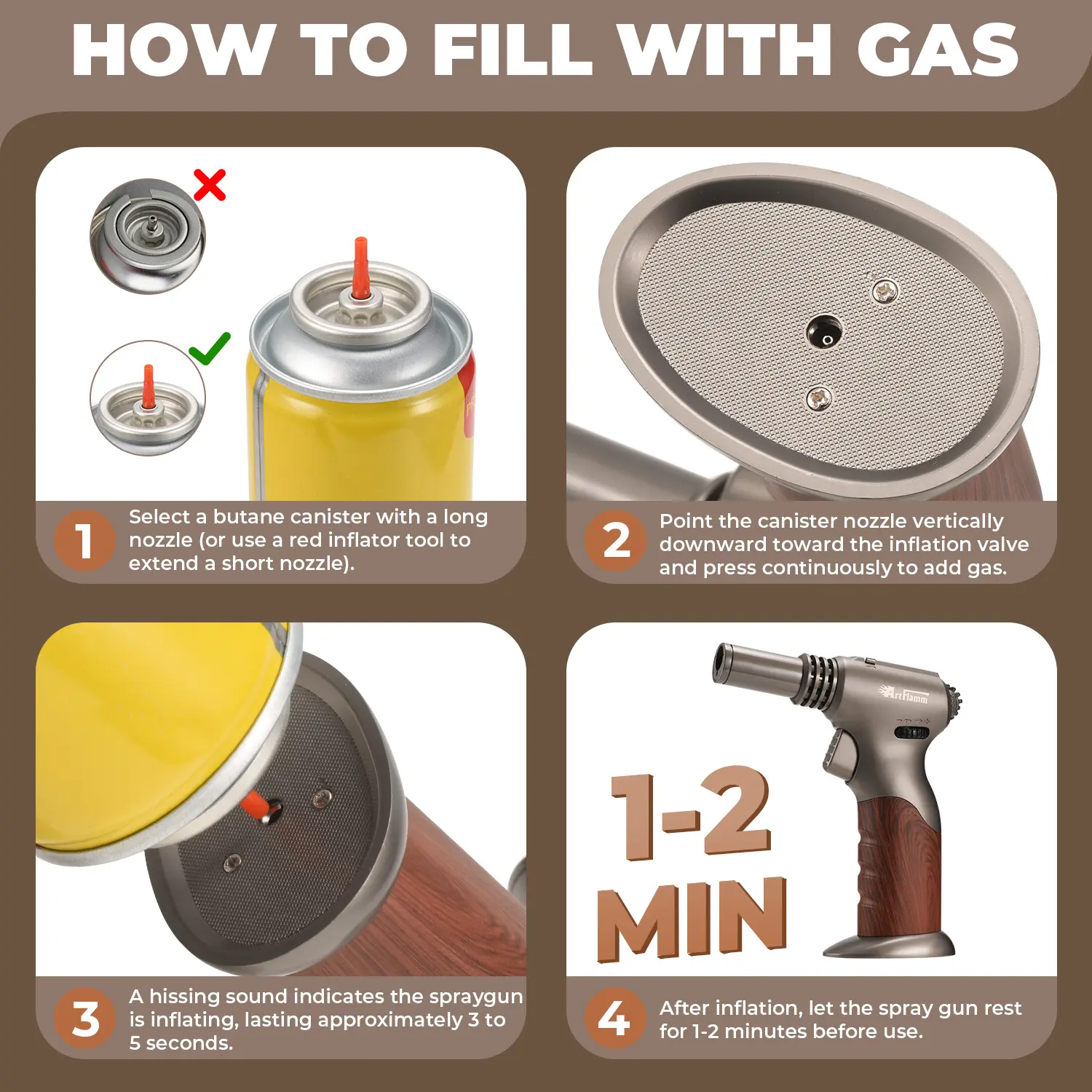This torch is fully refillable and works with most standard butane canisters available on the market. Reusable construction helps reduce waste and saves money compared to disposable lighters. Butane gas is not included due to shipping and safety regulations.