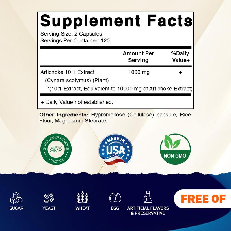 ·High Potency: Each serving delivers 1000 mg of artichoke extract 10:1, providing a concentrated dose in every capsule.