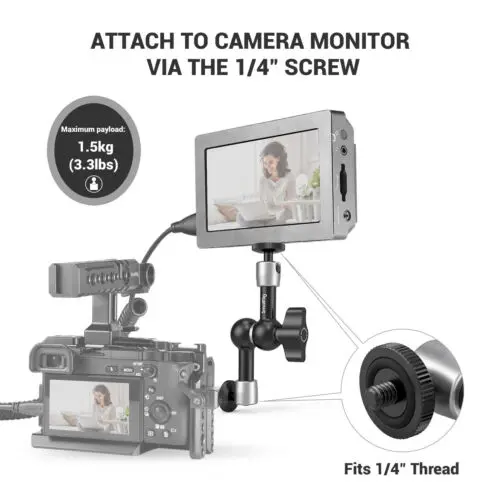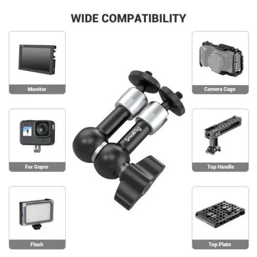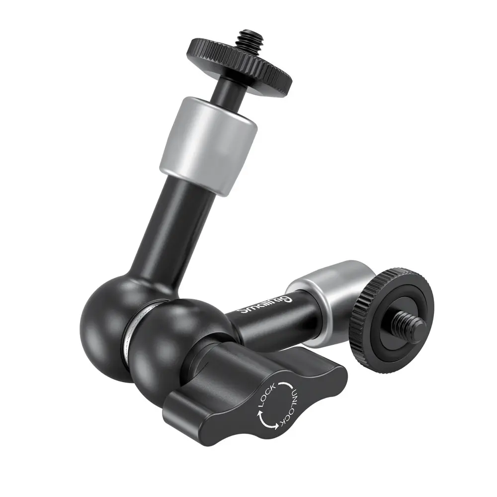 Ever struggled to get the perfect angle for your camera accessories? The SmallRig 5.5 Inches Adjustable Friction Power Articulating Magic Arm is here to save the day! This magic arm lets you position your LCD monitor, LED lights, or microphones exactly where you need them with ease. Thanks to its double 360-degree ball heads, you get full freedom to adjust angles smoothly and lock them tight with the friction power design. Both ends come equipped with 1/4" thread screws, making it super compatible with a wide range of camera gear like flash lights, cages, and quick release clamps. Plus, the rubber cushions on the screws protect your delicate monitors from scratches while securing them firmly. Crafted from durable aluminum alloy and stainless steel, this arm is built for serious shooting sessions. The package includes one 5.5-inch articulating magic arm ready to mount your accessories. Whether you’re a pro videographer or a passionate hobbyist, this magic arm adds flexibility and convenience to your setup. Ready to upgrade your rig and get those perfect shots? Grab your SmallRig magic arm and start creating with confidence!