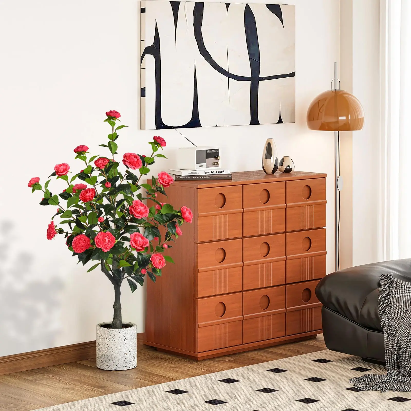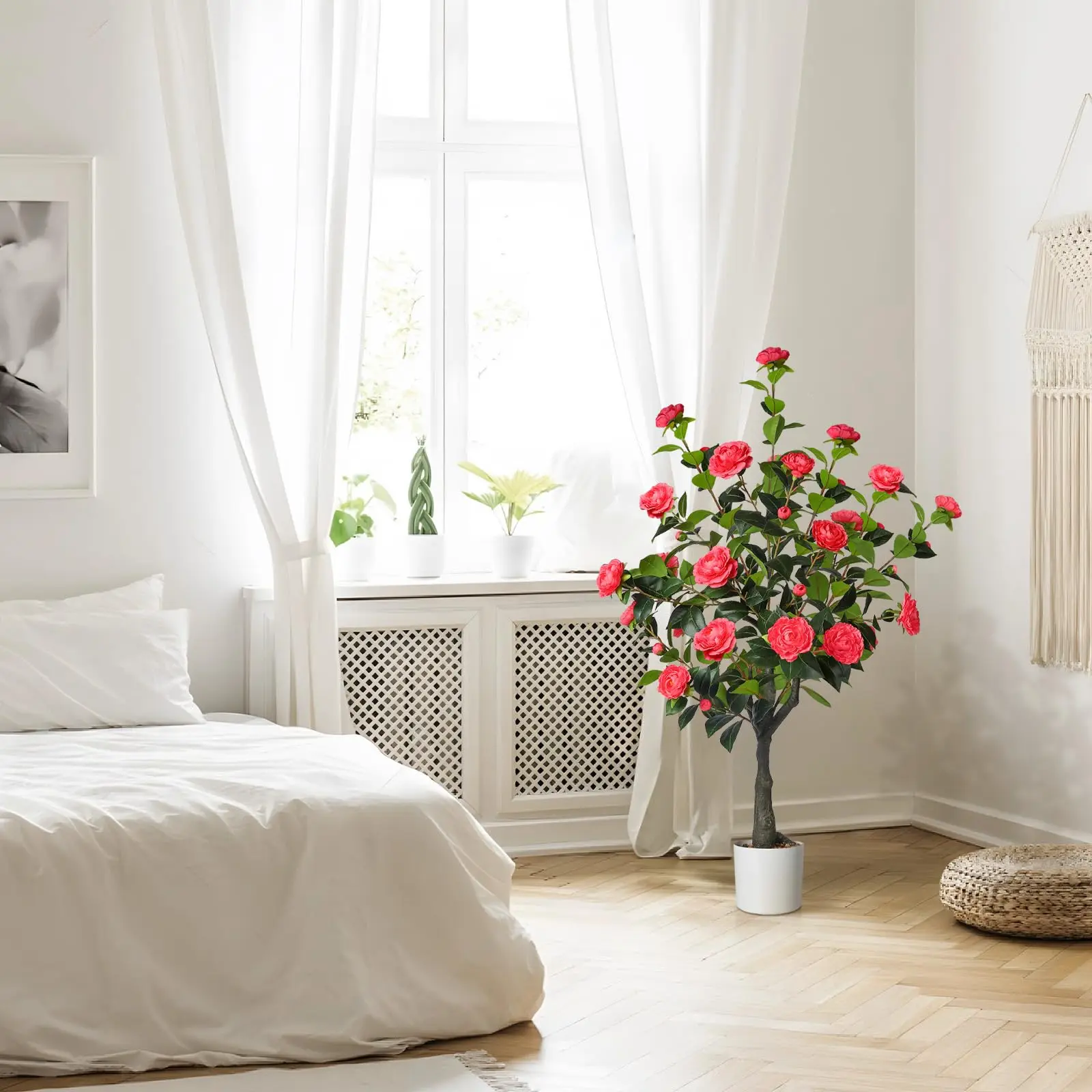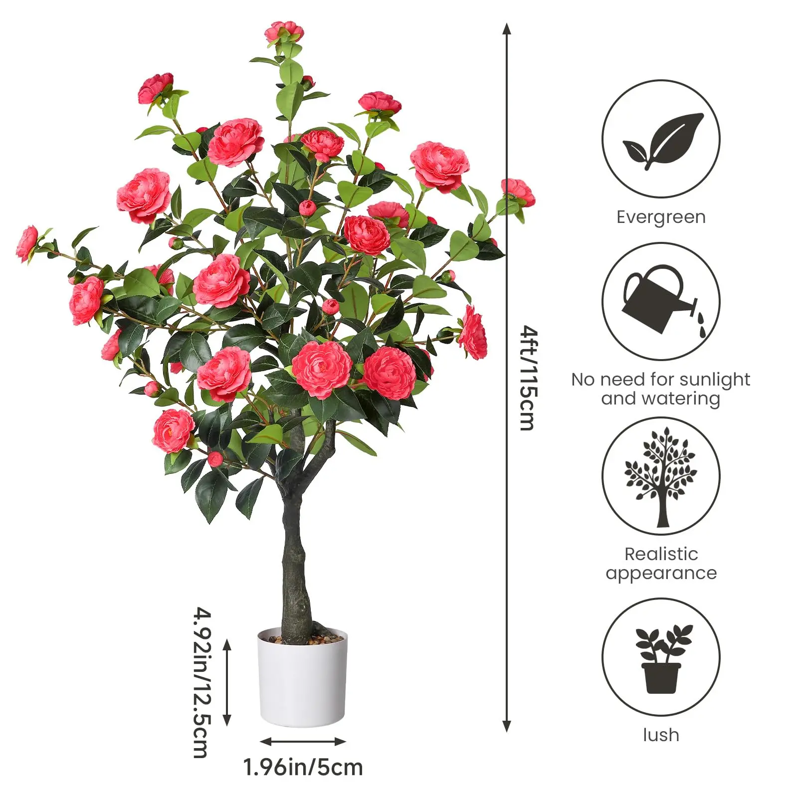 The camellia tree features vivid blooms and intricate details. At 4 feet tall, it instantly enlivens any space. The Romantic Season camellia tree brings a fresh, rejuvenated look. Its realistic appearance makes it a standout piece for any decor.