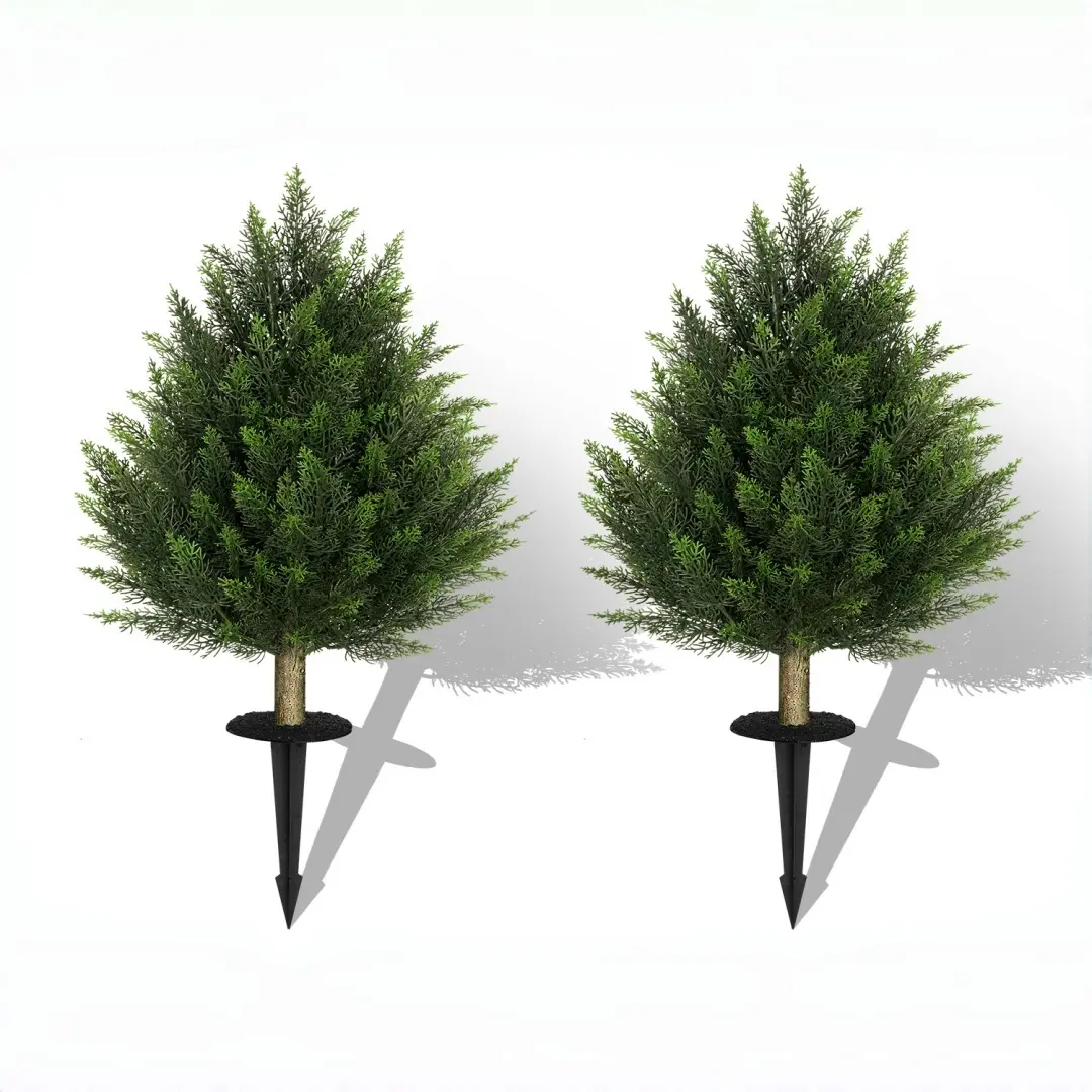 Very pleased with these! Love the idea of no watering or trimming! They are so realistic looking just took a little fluffing spreading branches