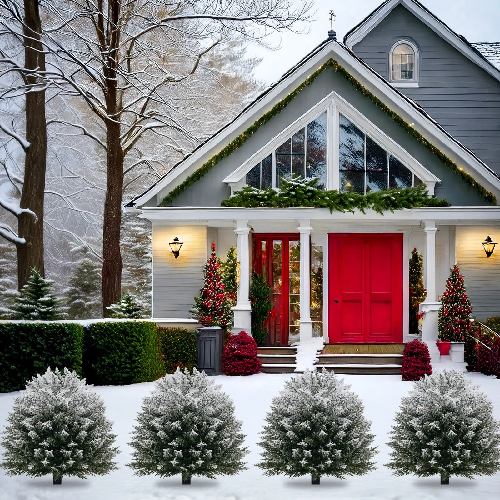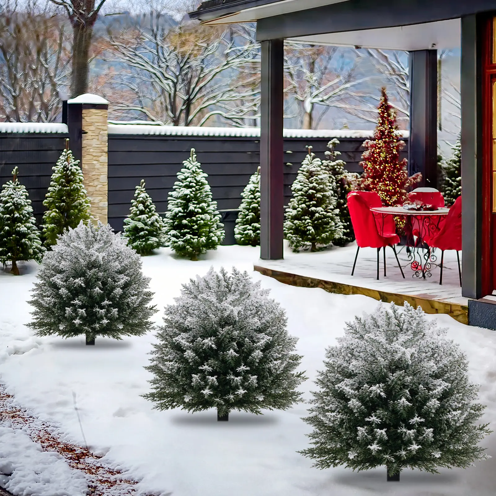 【Christmas Theme】: Features a snowy finish, enhancing your holiday decor and creating a festive atmosphere outdoors.