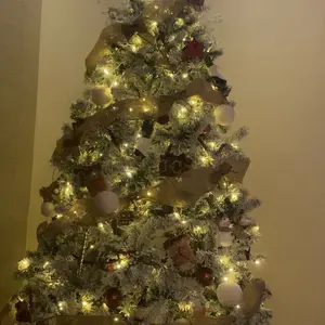 I really love this tree for the price it cost when I saw the TikTok live of the seller selling the street. Hers looked really really flocked. I tried to flock mine as much as I could, but there’s still some dents so I don’t know if that’s on me, but I feel like an extra branch could’ve been put there and it’s not there I just covered it with an ornament so it’s not as noticeable but Other than that. The tree looks really good.