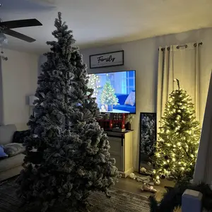 Love it! Ladies and Gentlemen go for it! Full, festive, easy to put together, take your time to fluff it out my patience is like a toddler but I got through it to get the look. Shipping was quick and boxed neatly. I’m super excited having a 7.5ft flocked tree under $90 can’t beat that.