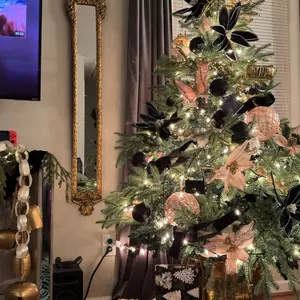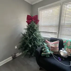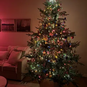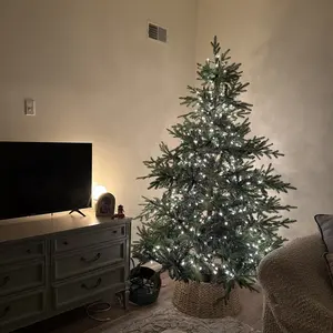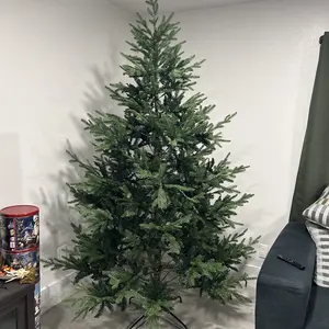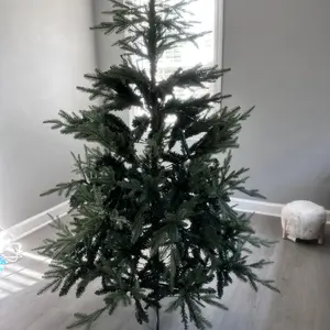 This tree is super sparse and it doesn’t look like the images on the advertisement. It has some real looking pine at the tips of the branches, but the branches are very far apart from each other that you’ve been trying to fill it with more pine pics will be impossible because the branches are so far apart from each other. It looks naked and the middle of the trunk is super cheesy so I don’t know how I’m going to hide it. It’s not at all what I thought I was getting. I already broke down the box and so returning this thing is going to be a nightmare