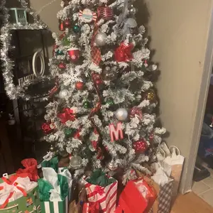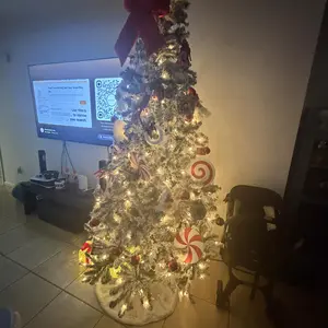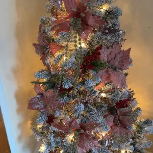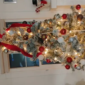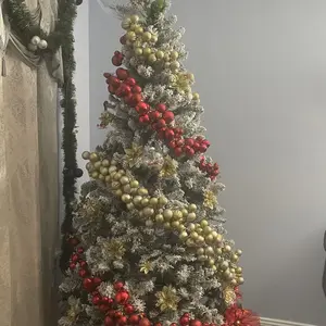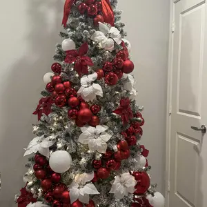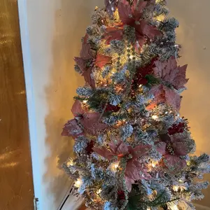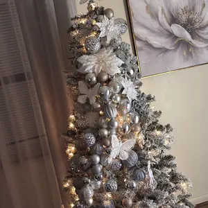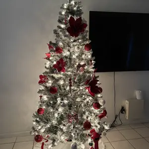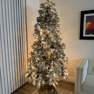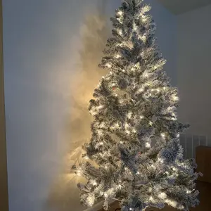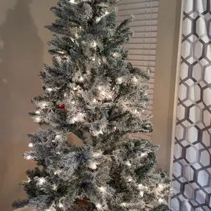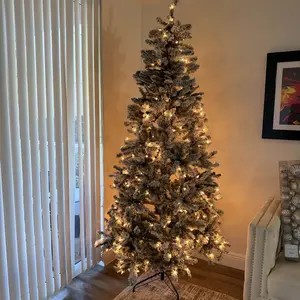 ✨ This 4/5/6/7.5/9 ft artificial hinged flocked tree features 339/525/785/998/1600 branch tips, making it lush and full. The flocked snow-covered leaves create a winter wonderland, adding festive cheer to your living space. Sizes range from 4 to 9 feet, perfect for various spaces.