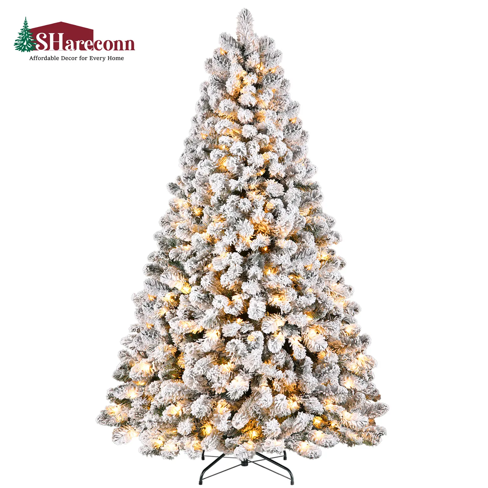 📏 Sizes: 4/5/6/7.5/9 FT; PVC snow flocked branch tips: 339/525/785/998/1600; Warm White Lights: 100/150/250/350/600. Choose the right size and lighting for your home or event.
