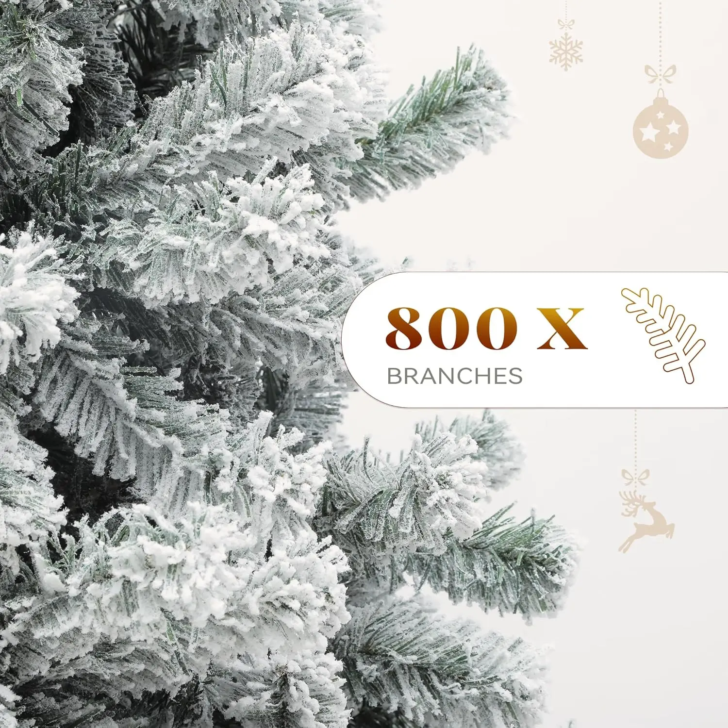 Snow Flocked Style: Spark festive cheer with our 6ft snow flocked artificial Christmas pine tree; Its distinct, snow-covered appearance and 880 bendable branch tips can be conveniently decorated with ornaments for an elegant and tailored holiday vibe