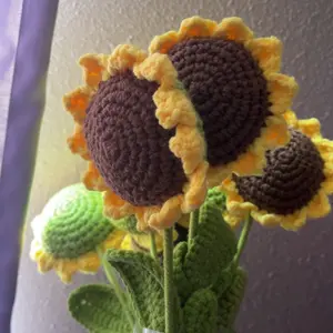 【Vibrant Decor】: These vibrant, artificial sunflower crochets serve as a perennial decoration, brightening up your living room, bedroom, or dining area effortlessly.