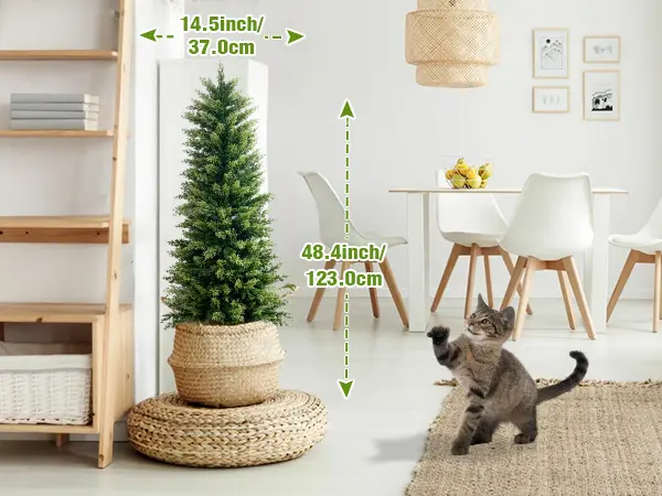 Crafted with UV-resistant materials, these trees hold their vibrant green color season after season, whether you style them outdoors on a porch or indoors beside the fireplace. Their realistic branch structure is ideal for hanging lightweight ornaments, ribbons, or fairy lights for a festive touch.
