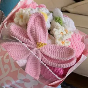 My family recently welcomed a new niece into the world. This is her first Valentine’s Day, but since she’s a newborn, I opted to get this crotchet flower bouquet in lieu of real flowers.