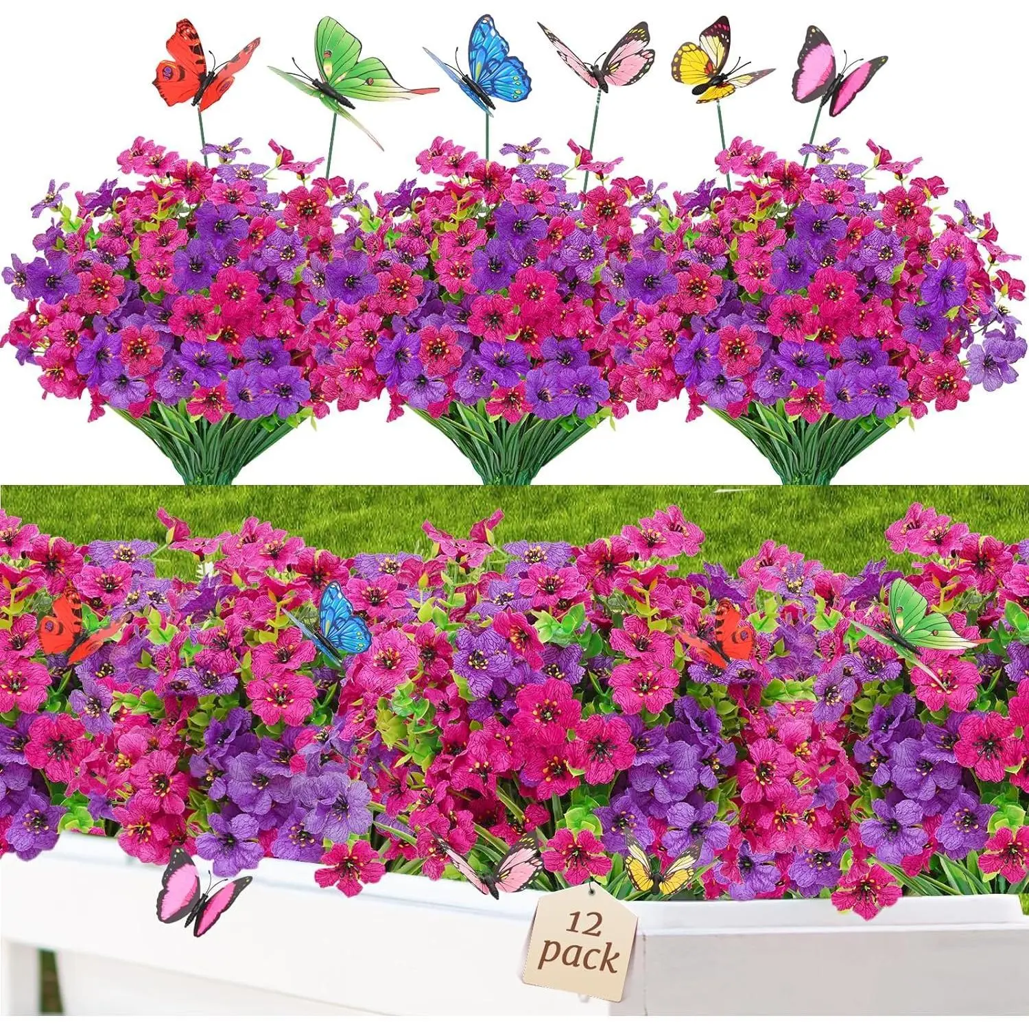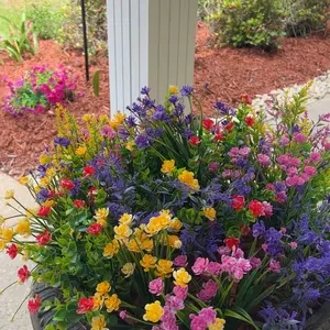 Love these. 69 yrs of age and it's the first time I've used fake flowers outside and these look real even close up. This is 18 bundles.